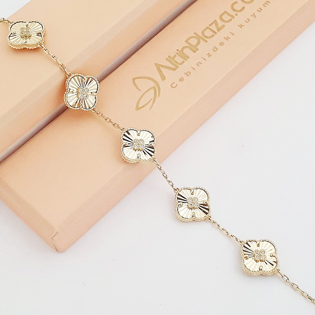 14 Ayar Altın 4 Yapraklı Aynalı Yonca Bileklik KN10187