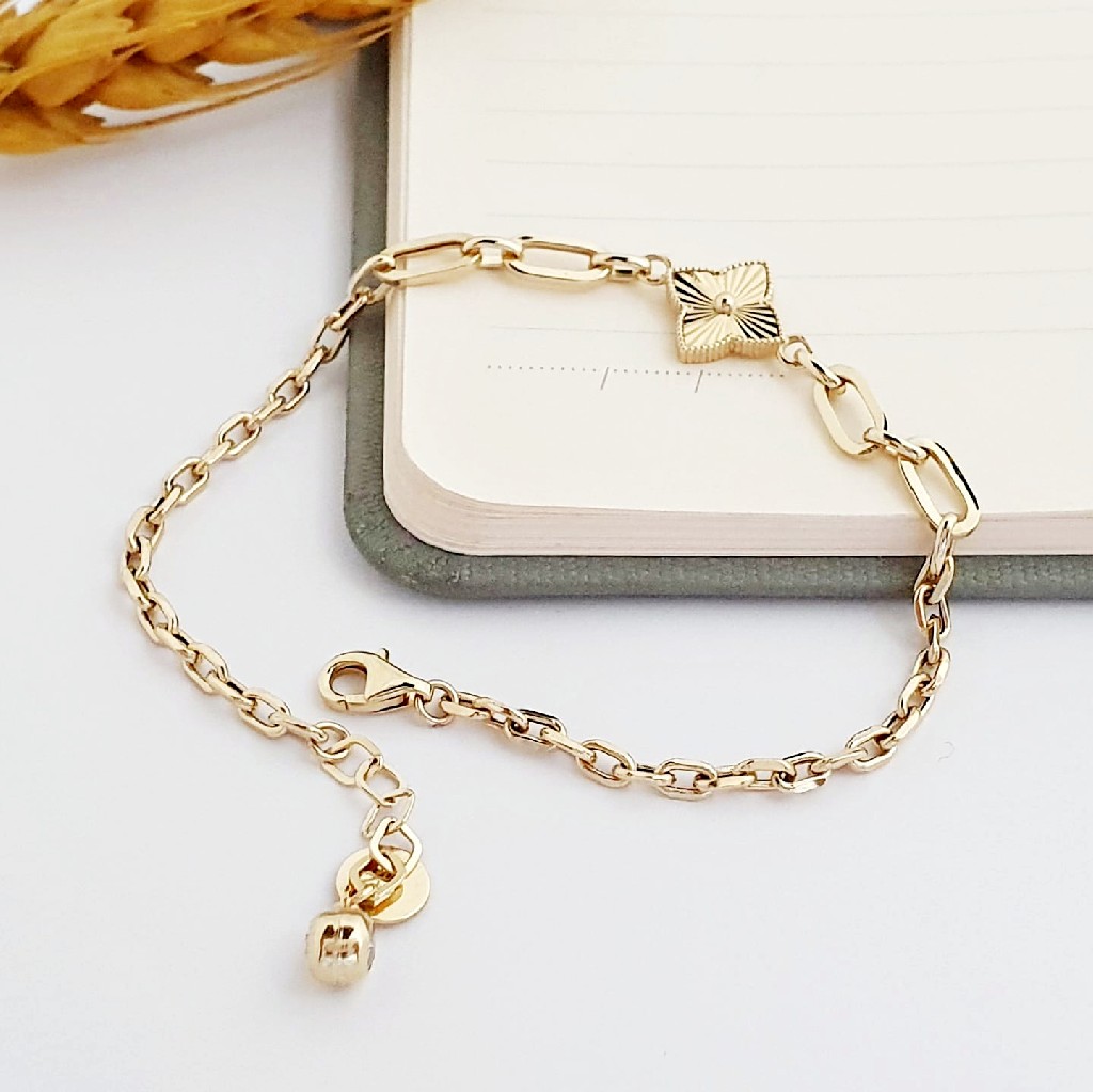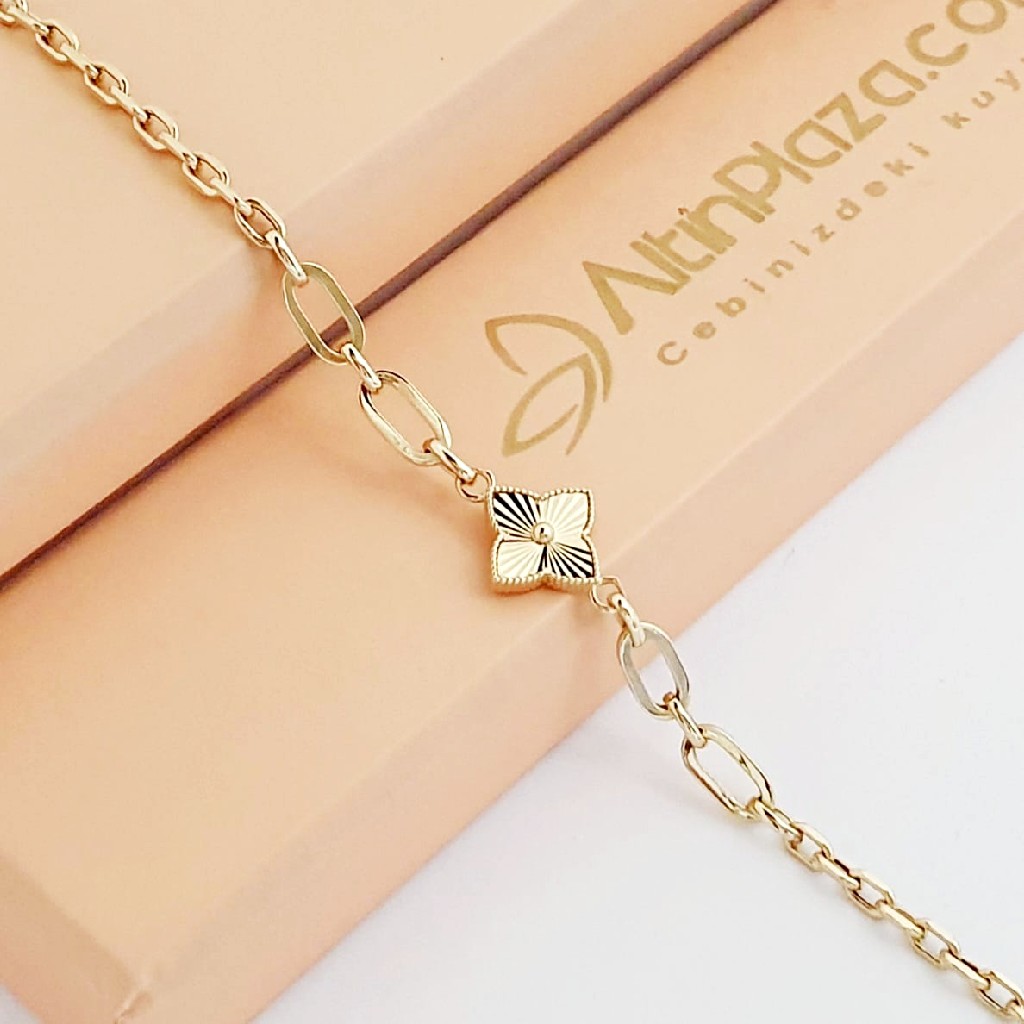 14 Ayar Altın Ataç Zincir Yonca Bileklik KN09966