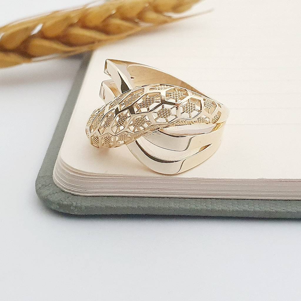 14 Ayar Altın Bal Peteği Desenli Ajur Çift Kollu Yüzük YZ03743