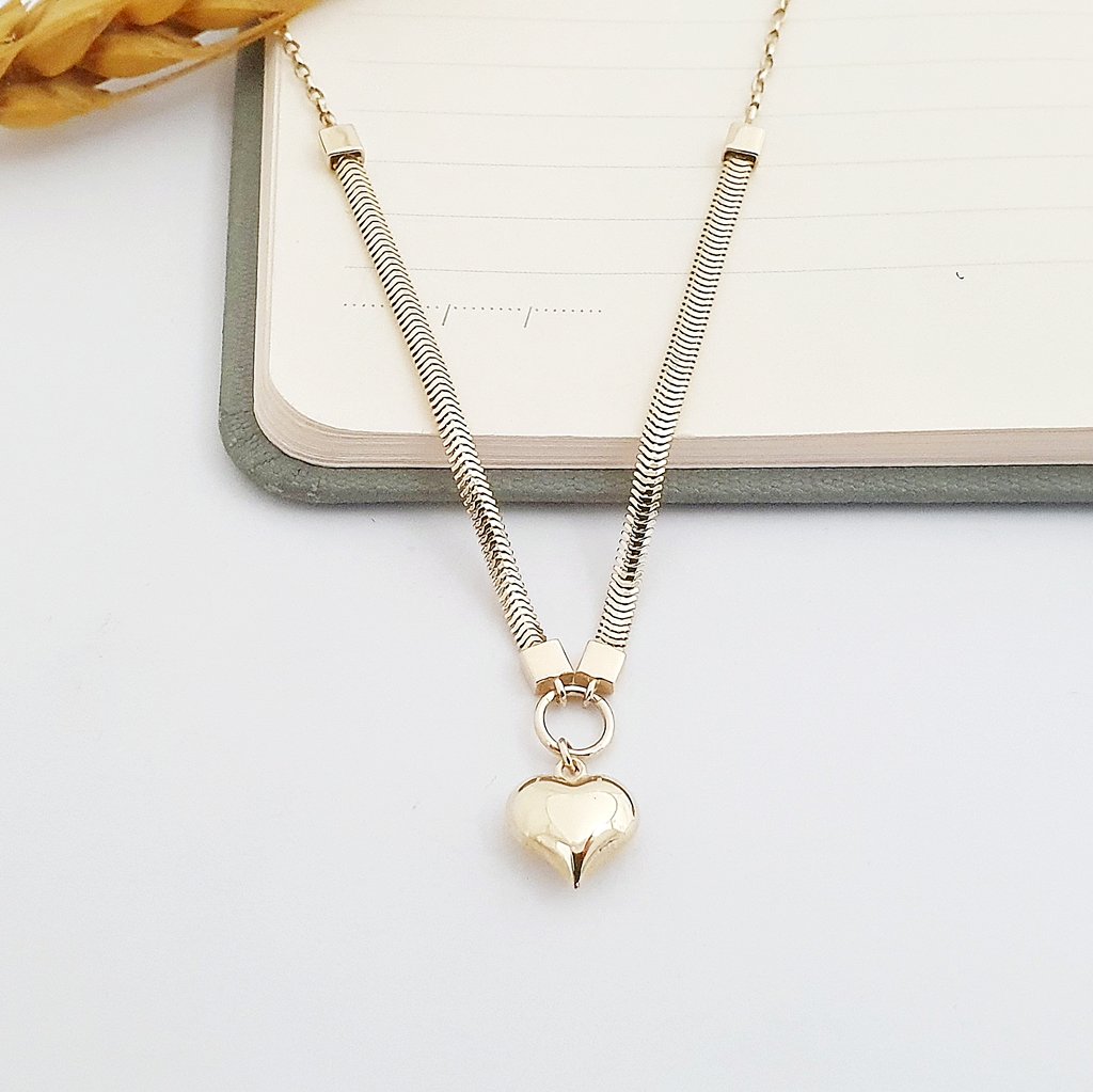 14 Ayar Altın Balık Sırtı & Forse Zincir Kalp Charm Kolye KL14349