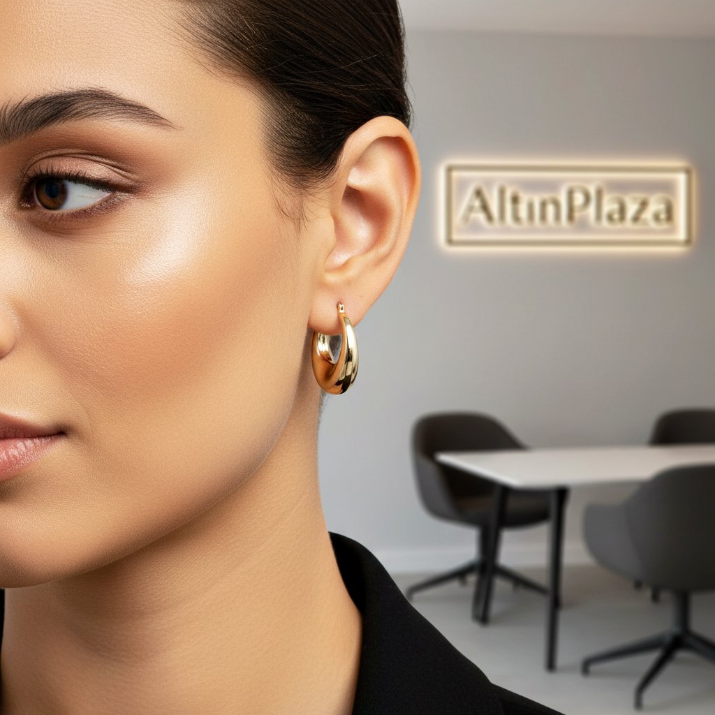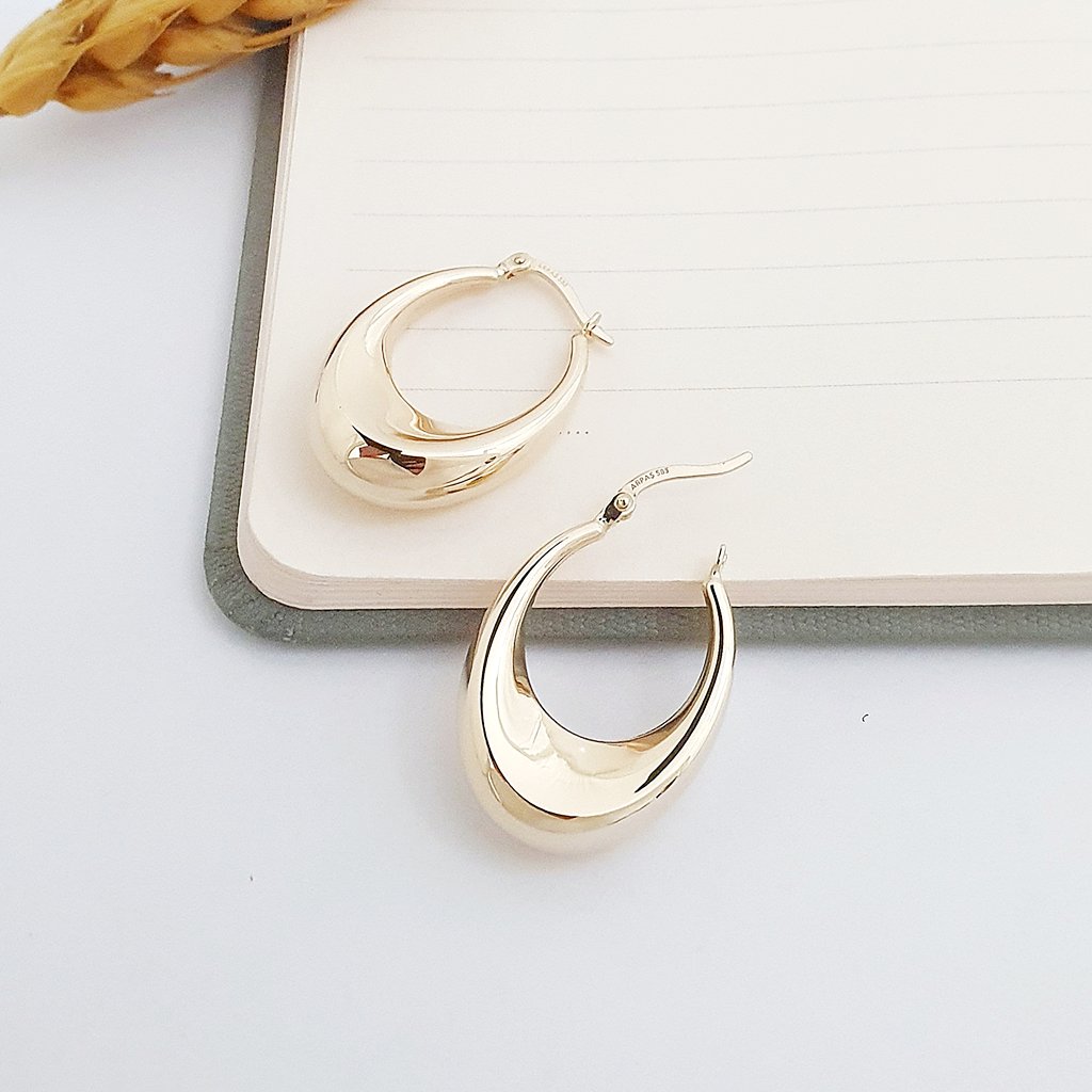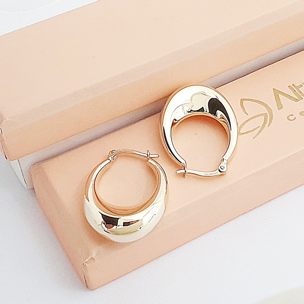 14 Ayar Altın Bombeli Süzme Büyük Halka Küpe 687388