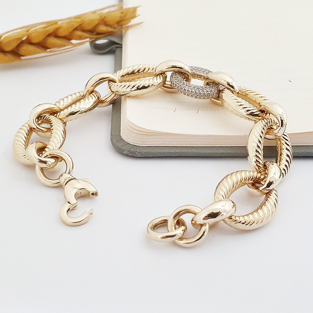 14 Ayar Altın Burgu Dokulu Büyük Halka Bileklik KN10172