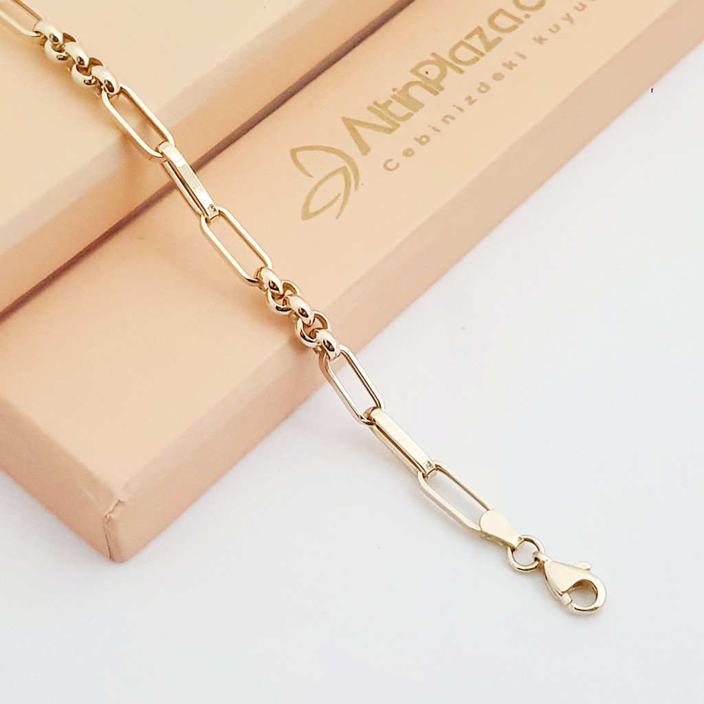 Spor ve göz alıcı ürünleri kaliteli tasarımlarıyla Cebinizdeki Kuyumcu AltınPlaza'da. Doch ve dikdörtgen ataç zincirli altın bileklik olarak öne çıkan bu 14 ayar bileklik modeli, taşsız parlak yüzeyi hem sağlam hem de spor bir üründür. Altın modelleri ve daha fazlası için en uygun fiyatları AltınPlaza'da bulabilir, garantili ve güncel bir ürüne sahip olabilirsiniz.