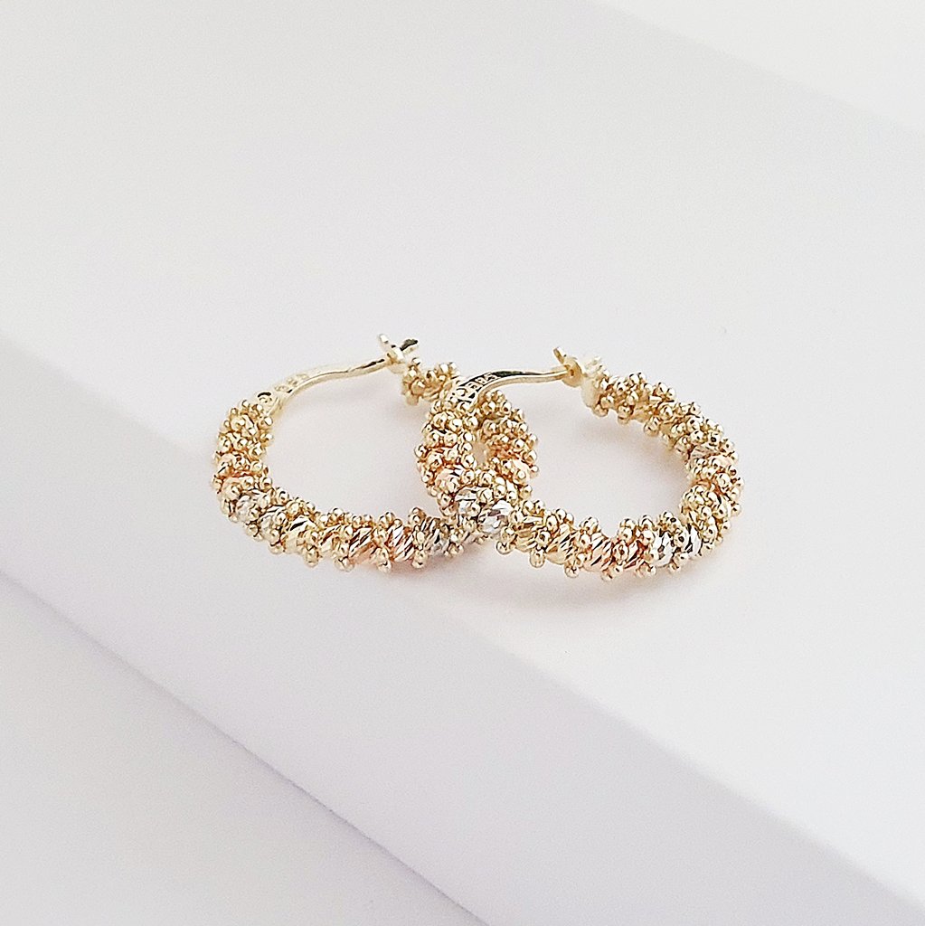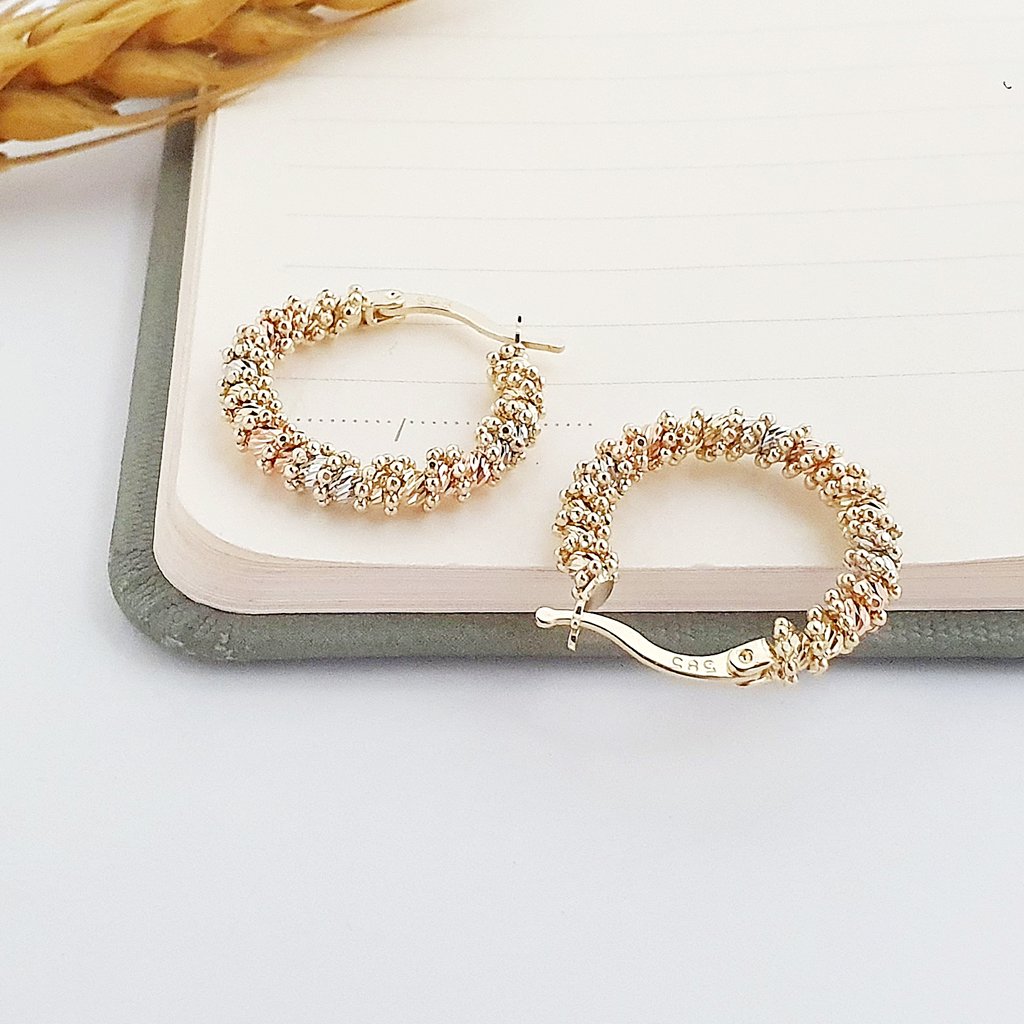 14 Ayar Altın Dorika Işık Taneleri Orta Boy Halka Küpe KP12868