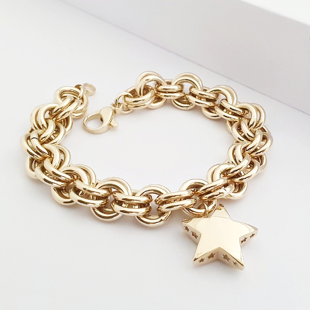 14 Ayar Altın Duble Doch Zincir Yıldız Charm Bileklik - KN10033