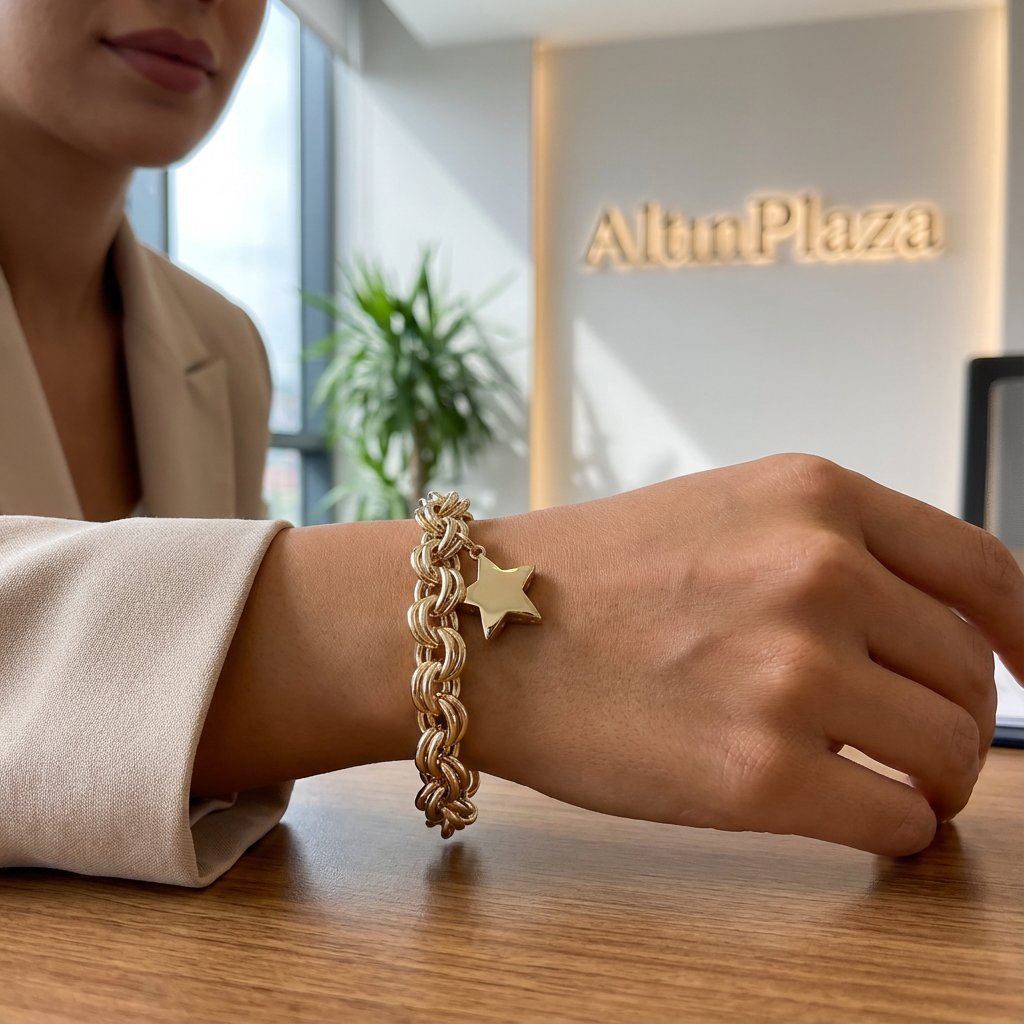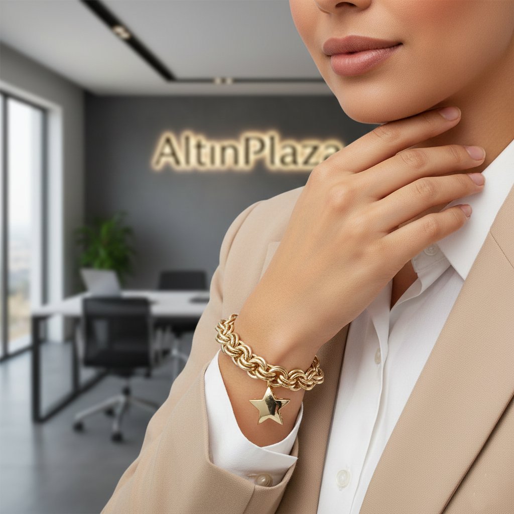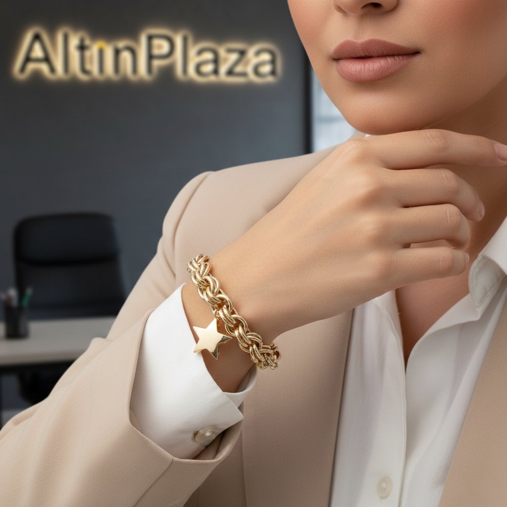 Tarzınıza yepyeni bir soluk getirmek için tasarlandı. En trend, göz alıcı ürünleri kaliteli tasarımlarıyla Cebinizdeki Kuyumcu AltınPlaza'da bulabilirsiniz. Bu gösterişli bileklik modeli, modern takı akımının zirvesinde yer alan bir parçadır. Zincir tasarımı, son dönemin en popüler 14 ayar altın zincir modellerinden biri olan Doch zincirdir. Özellikle ortasındaki bombeli yıldız charm sallantılı doch zincir bileklik detayıyla, size modern ve çarpıcı bir hava katar.
