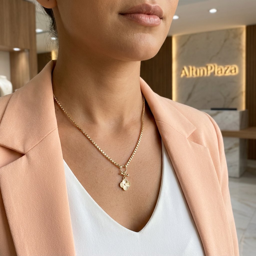 14 Ayar Altın Forse ve Kutu Zincir Aynalı Yonca Kolye KL14352
