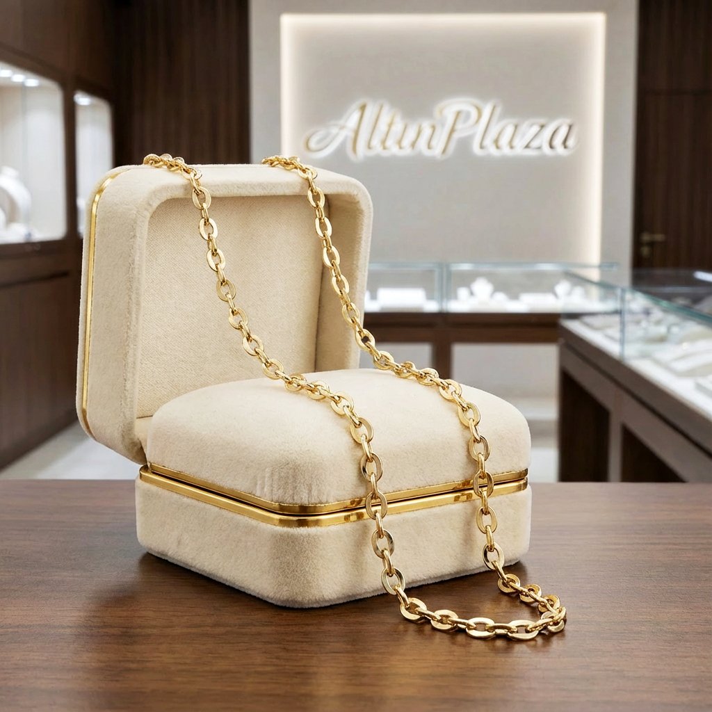 Sadelikle gücü birleştiren modern bir klasik olan altın forse zincir, düz ve birbirine geçen halkalardan oluşan yapısıyla hem zarif hem de sağlam bir duruş sergiler. Bu altın zincir modelleri arasında, erkeklerin de kullanabildiği unisex tasarım kolye olarak öne çıkar. 60cm uzunluğundaki uzun zinciri göz alıcı bir etki yaratır ve tek başına kullanılabileceği gibi, farklı kolye uçlarıyla da zarif ve diğer takılarla uyumlu bir kombin oluşturur.