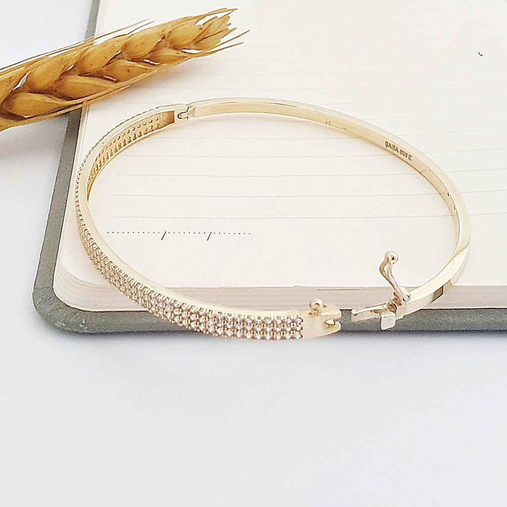 14 Ayar Altın İnce Form Taşlı Kelepçe Bilezik FB06154