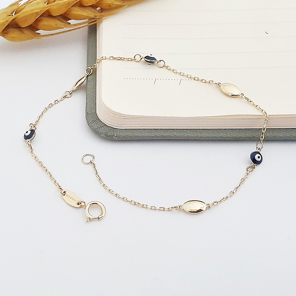 14 Ayar Altın İnce Zincirli Minimal Nazar Bileklik 630578