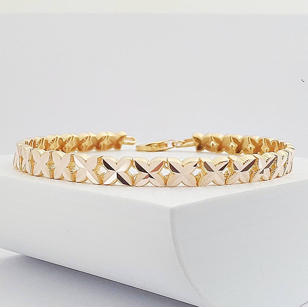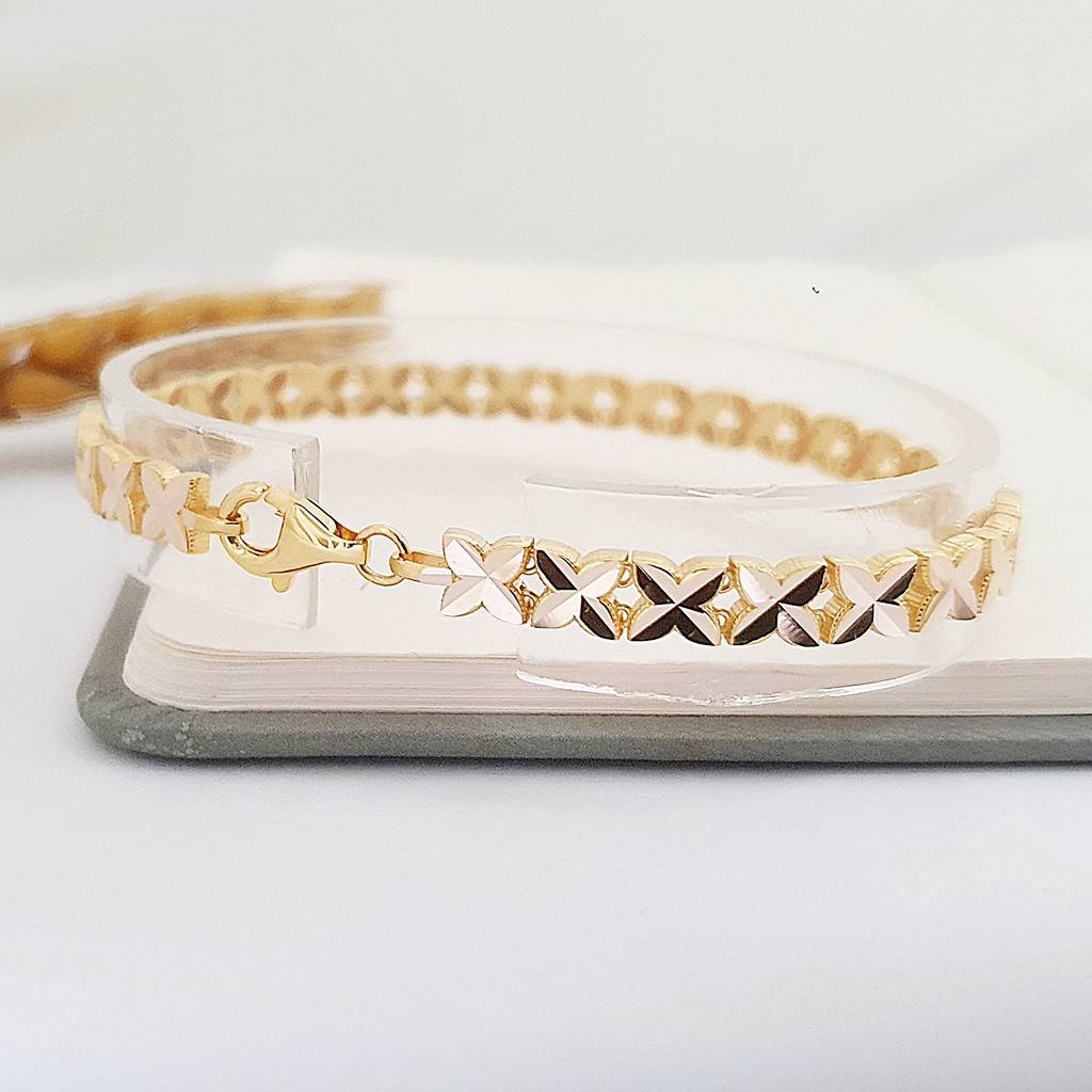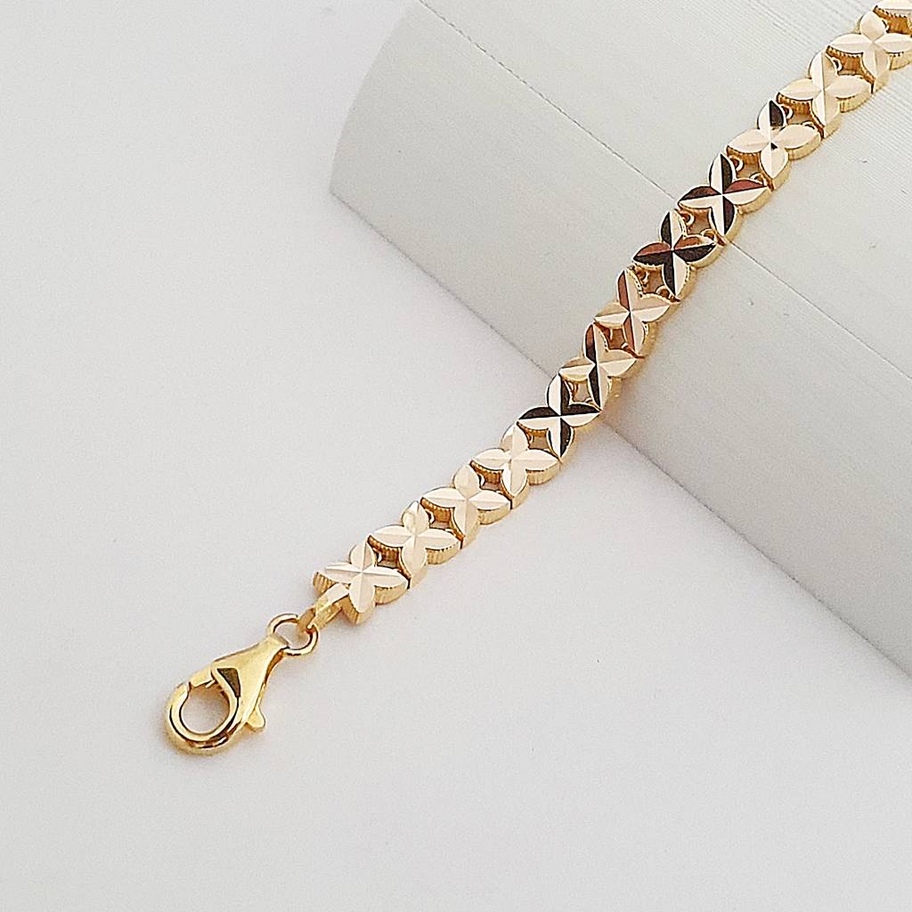 14 Ayar Altın Kalem İşlemeli Çiçek Sıralı Bileklik KN10494