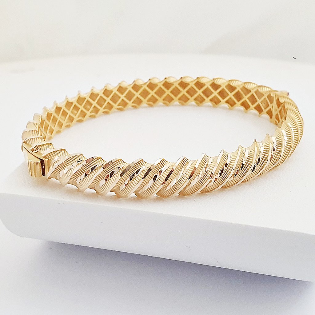 14 Ayar Altın Kalemli Sarmal Oluklu Kelepçe Bilezik FB07223