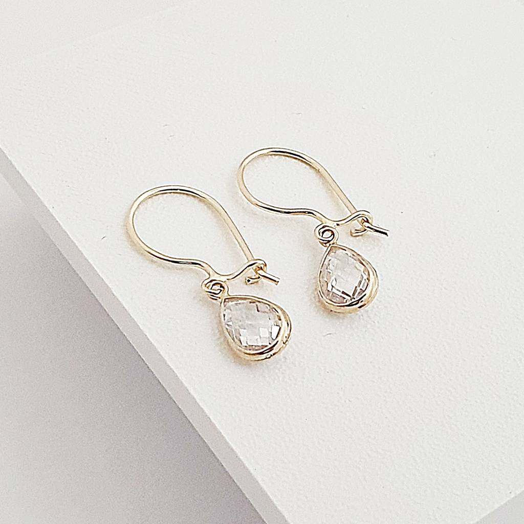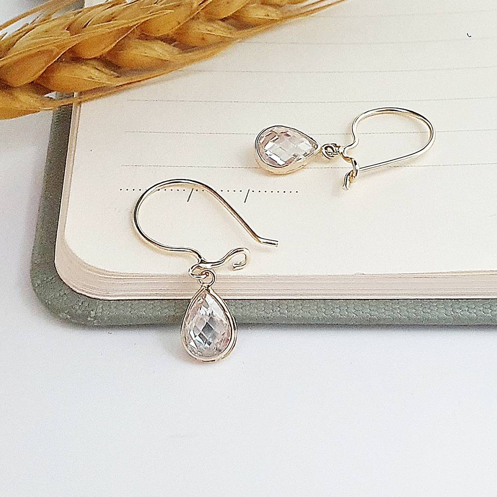 14 Ayar Altın Kristal Taşlı Damla Sallantılı Küpe KP13189