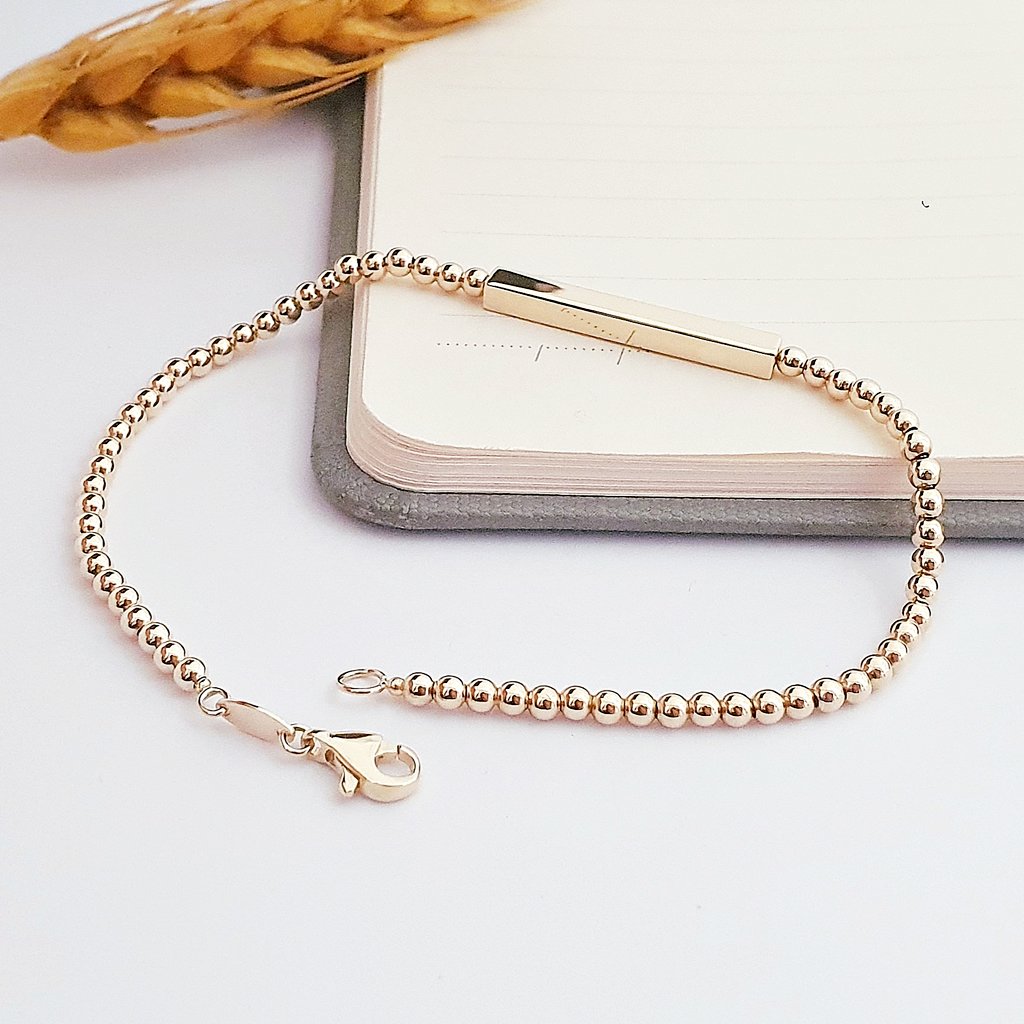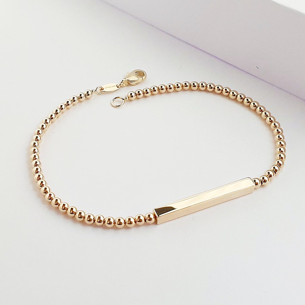 14 Ayar Altın Küçük Toplar Plaka Detay Bileklik 649061