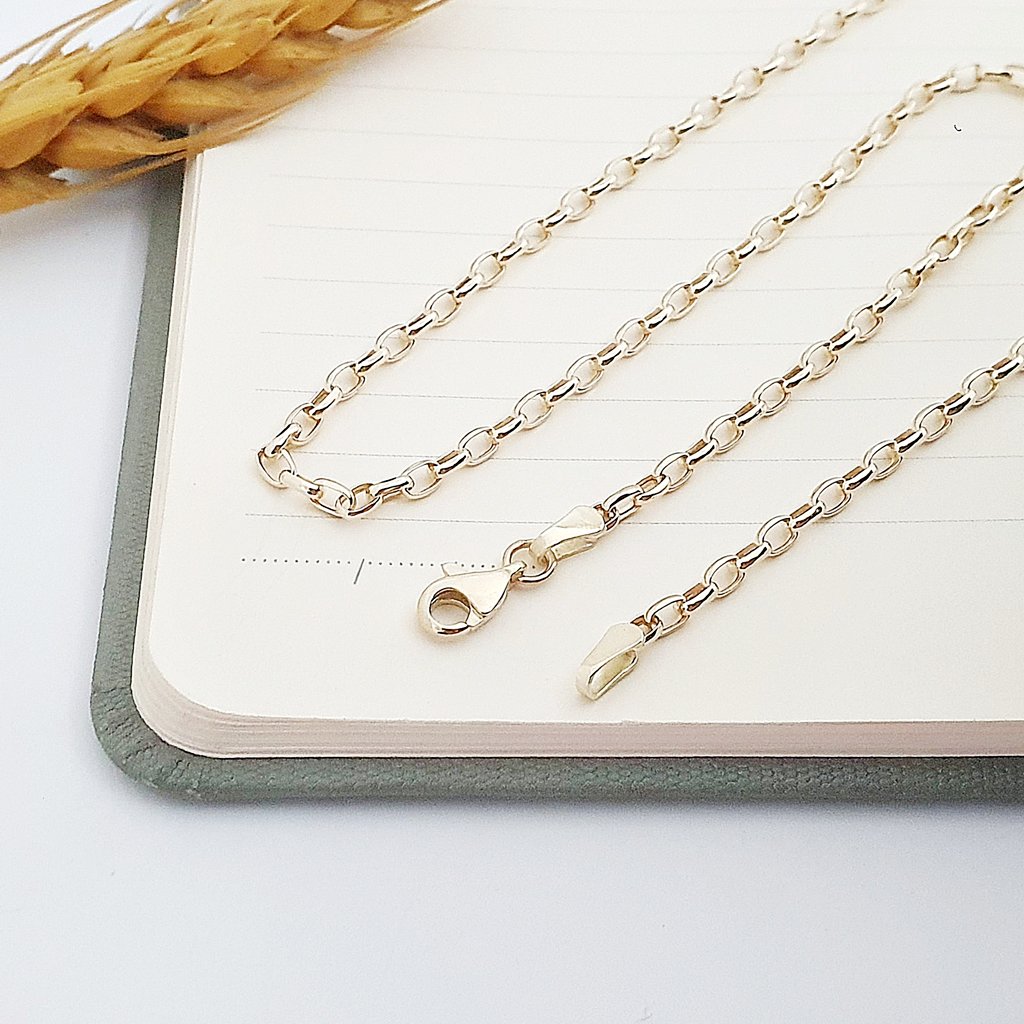14 Ayar Altın Minimal Oval Halkalı Zincir Kolye 55cm 730405