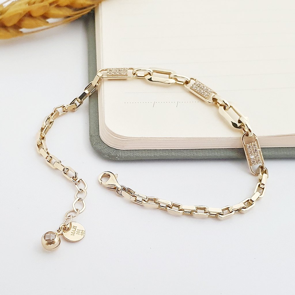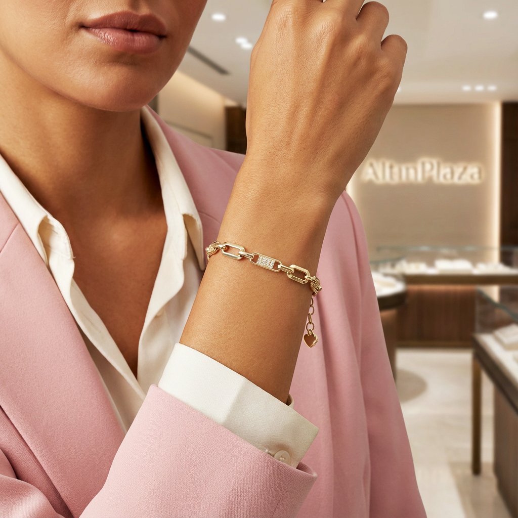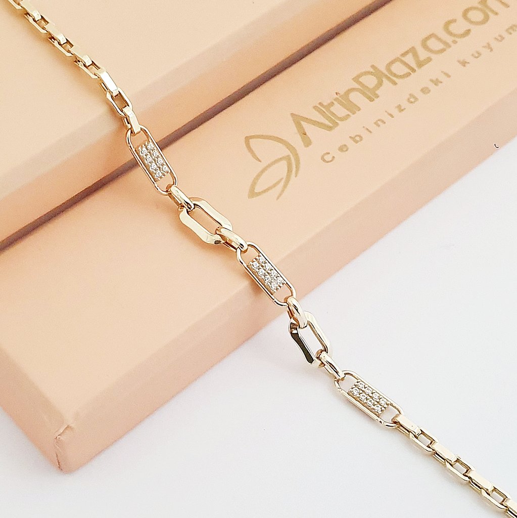 14 Ayar Altın Minimal Pave Detay Ataç Zincir Bileklik KN10128