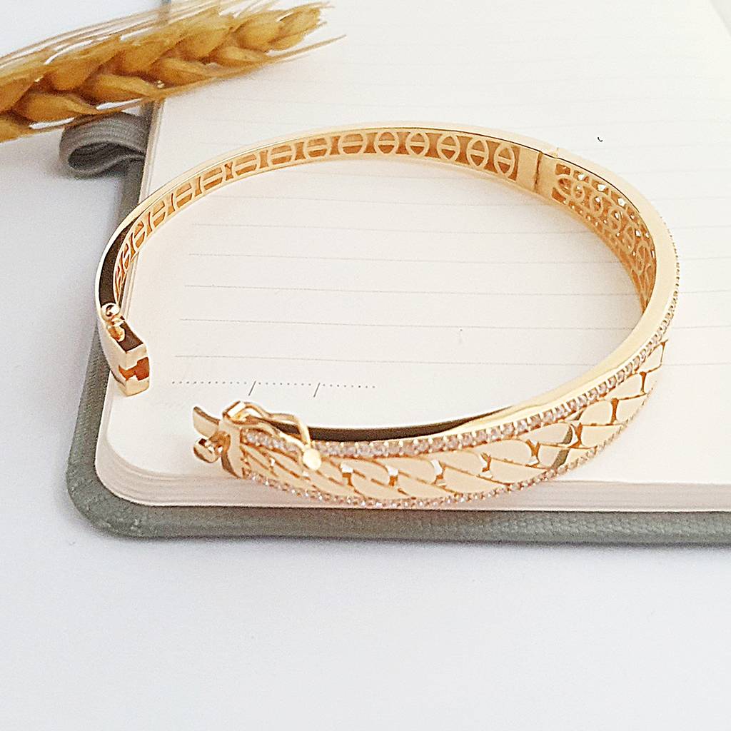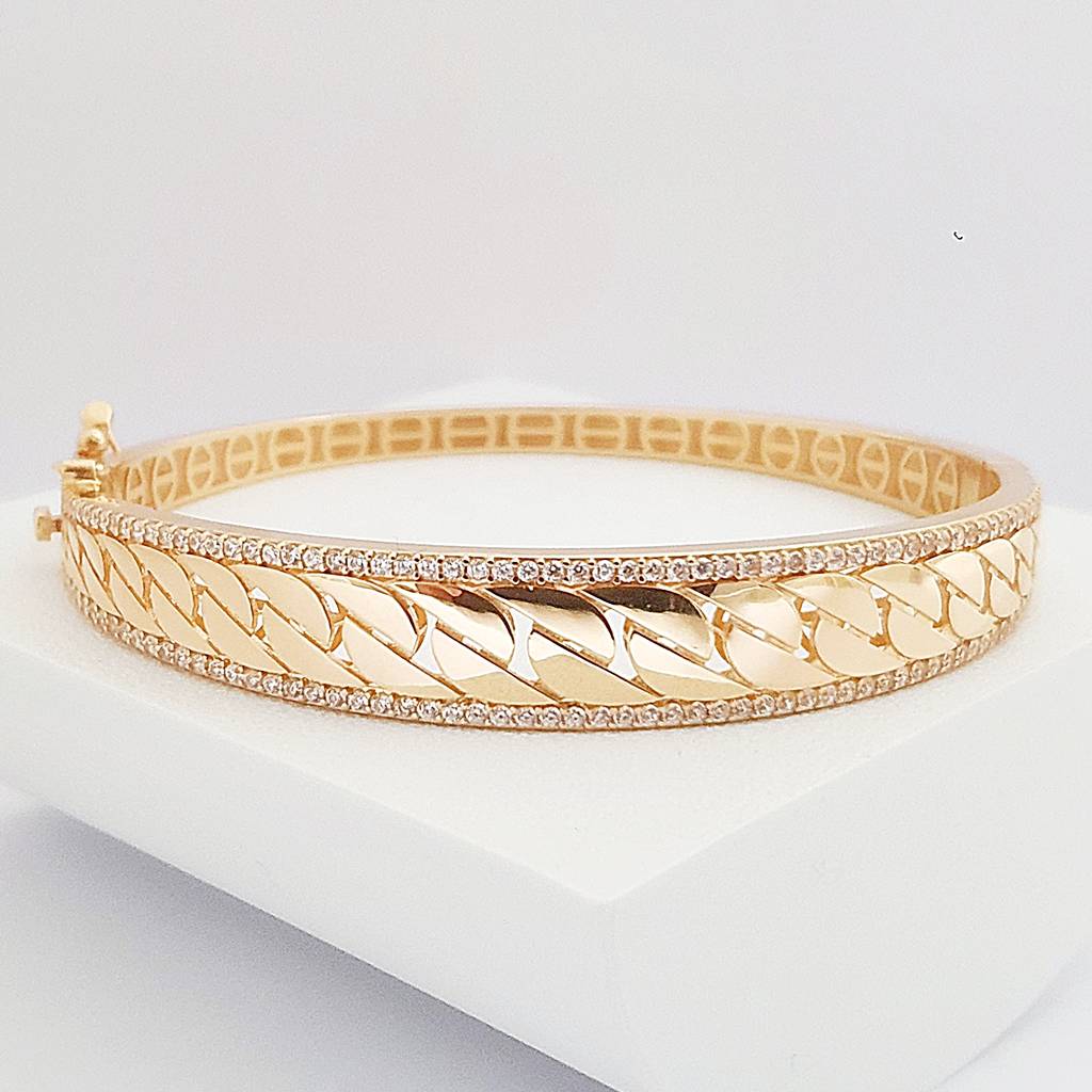 14 Ayar Altın Modern Örgü Desen Taşlı Kelepçe Bilezik FB07304