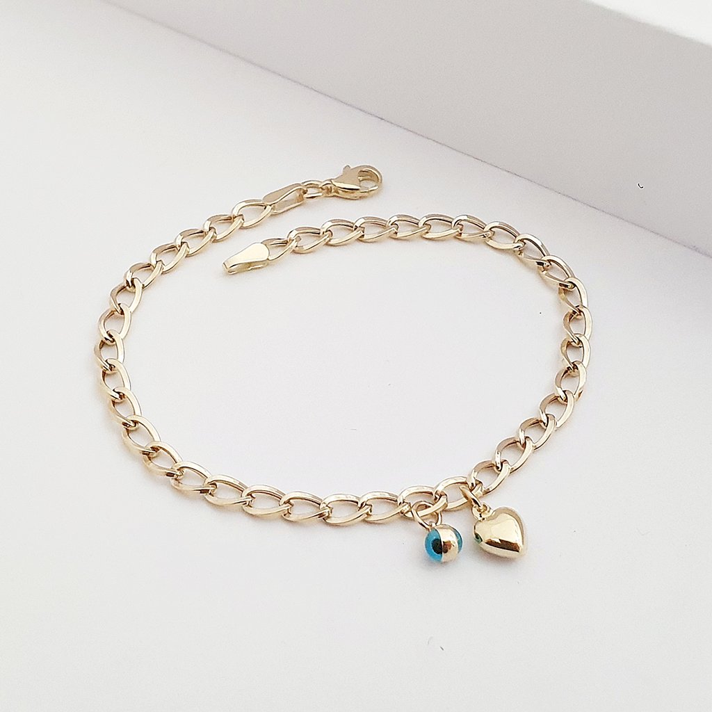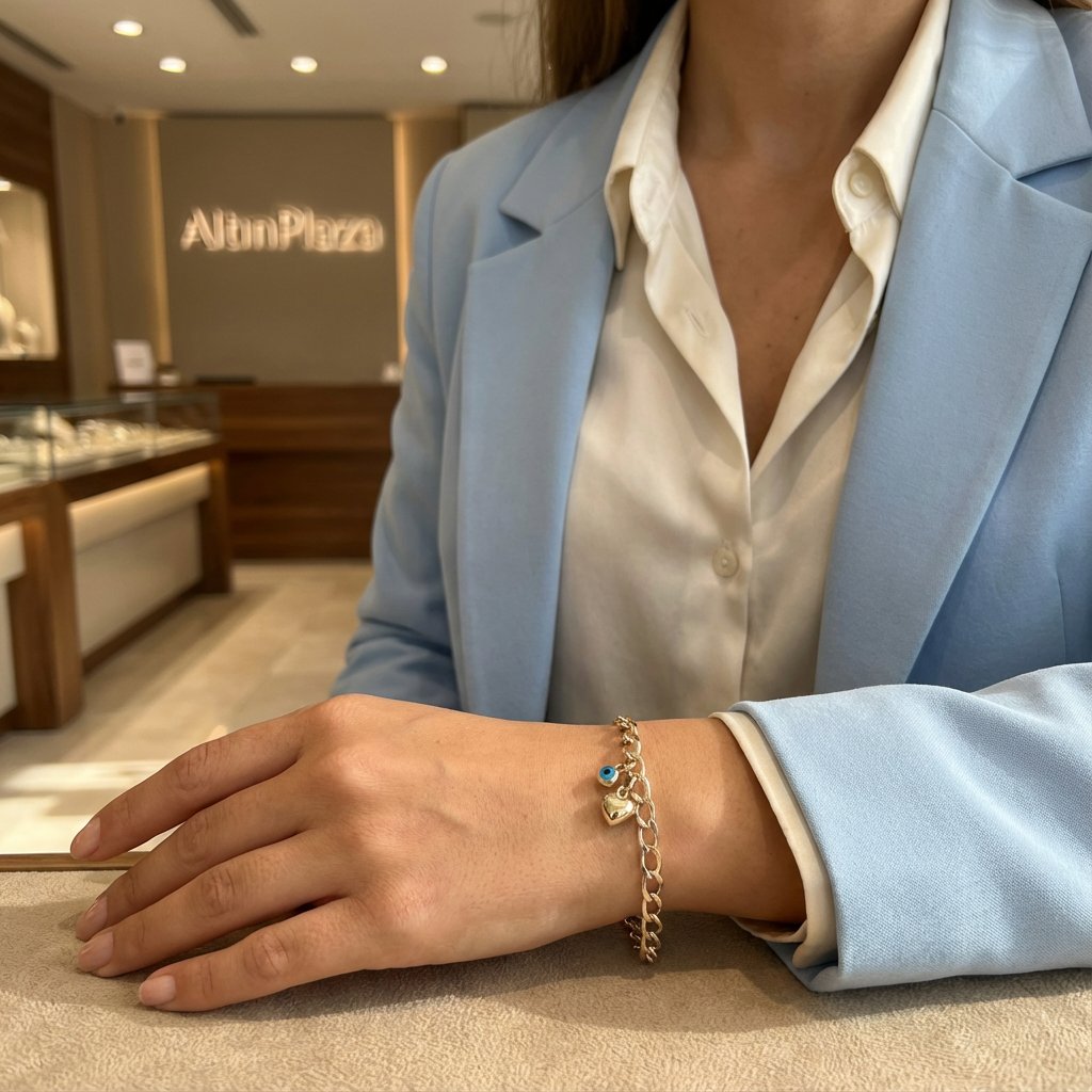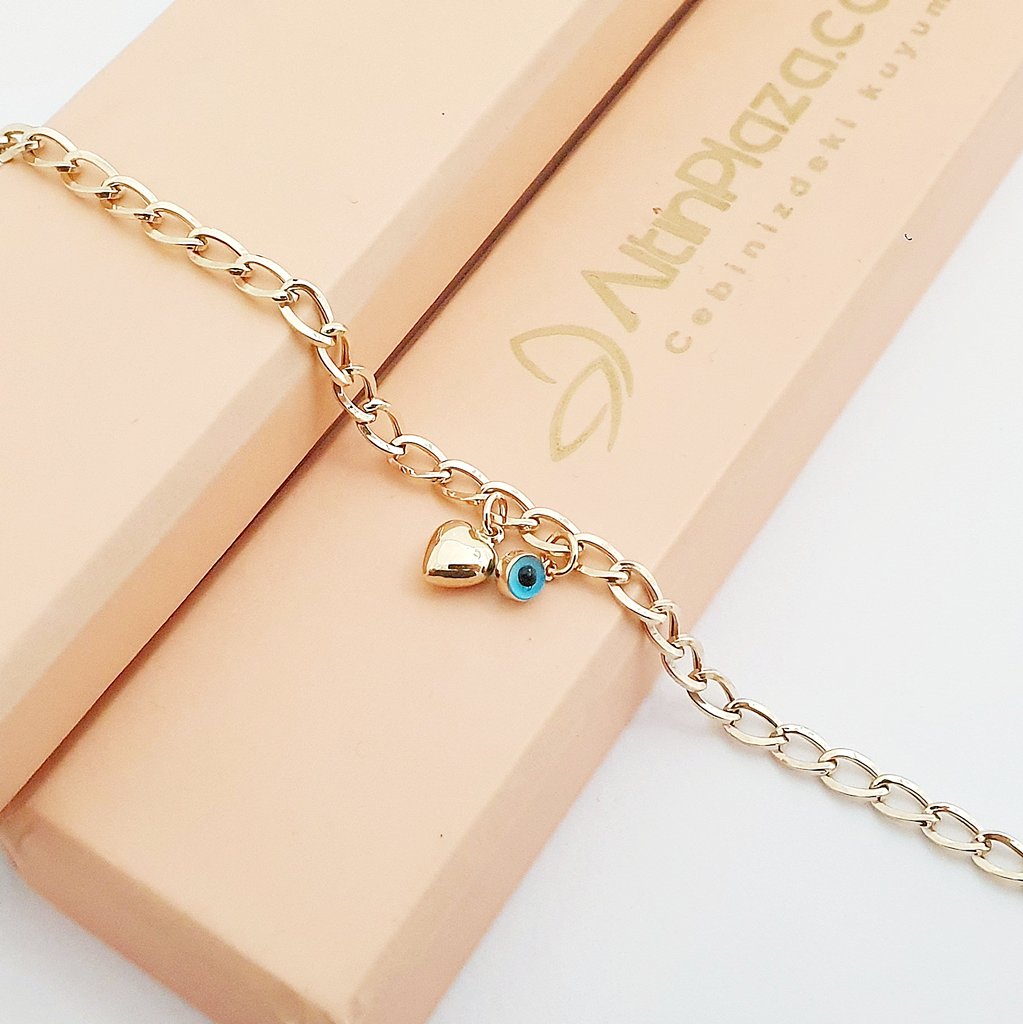 14 Ayar Altın Nazar&Kalp Detay Charm Bileklik 707911