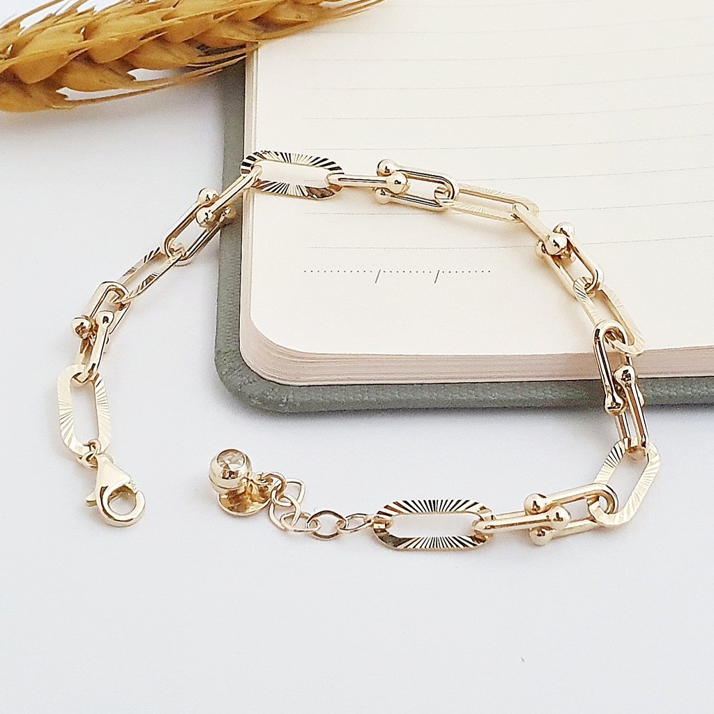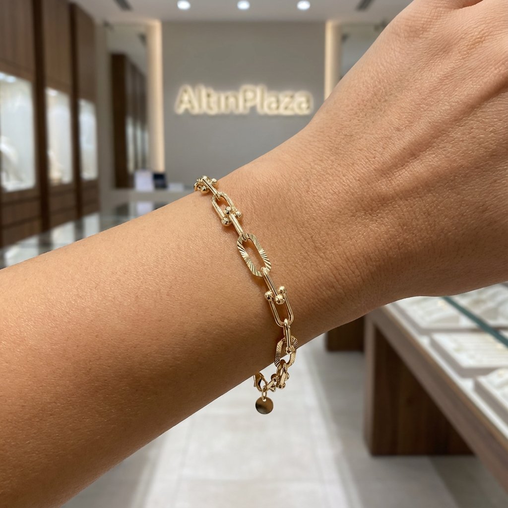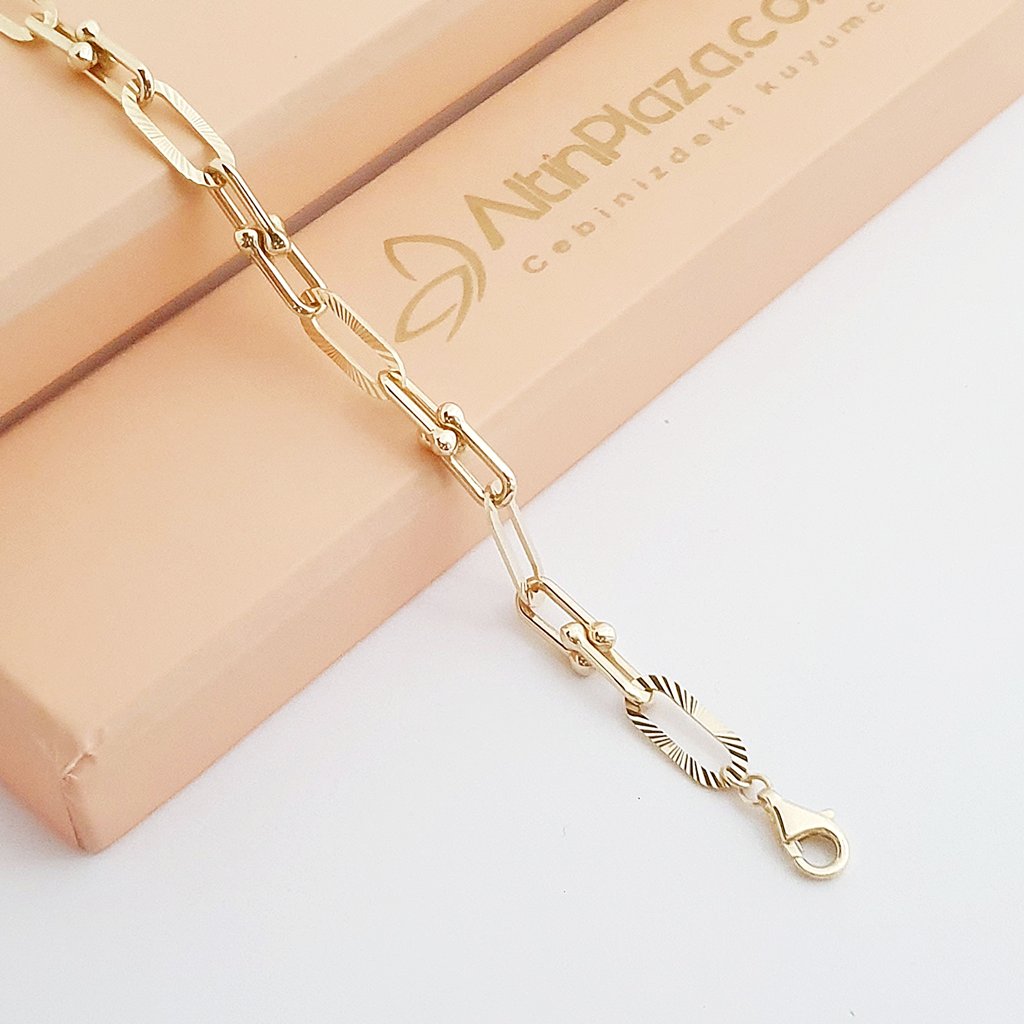 14 Ayar Altın Oval Halkalı Toplu Ataç Zincir Bileklik KN10123