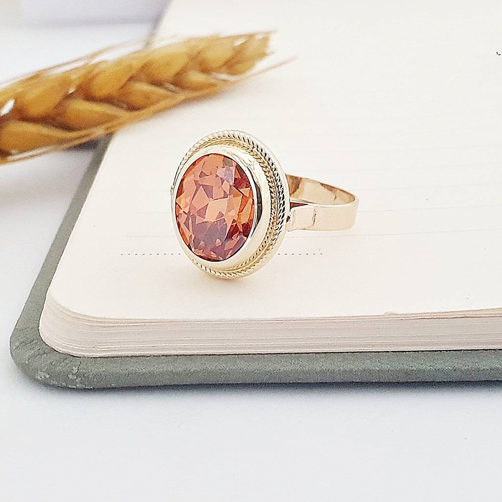 14 Ayar Altın Oval Kesim Kehribar Tonlu Bezel Yüzük YZ03812