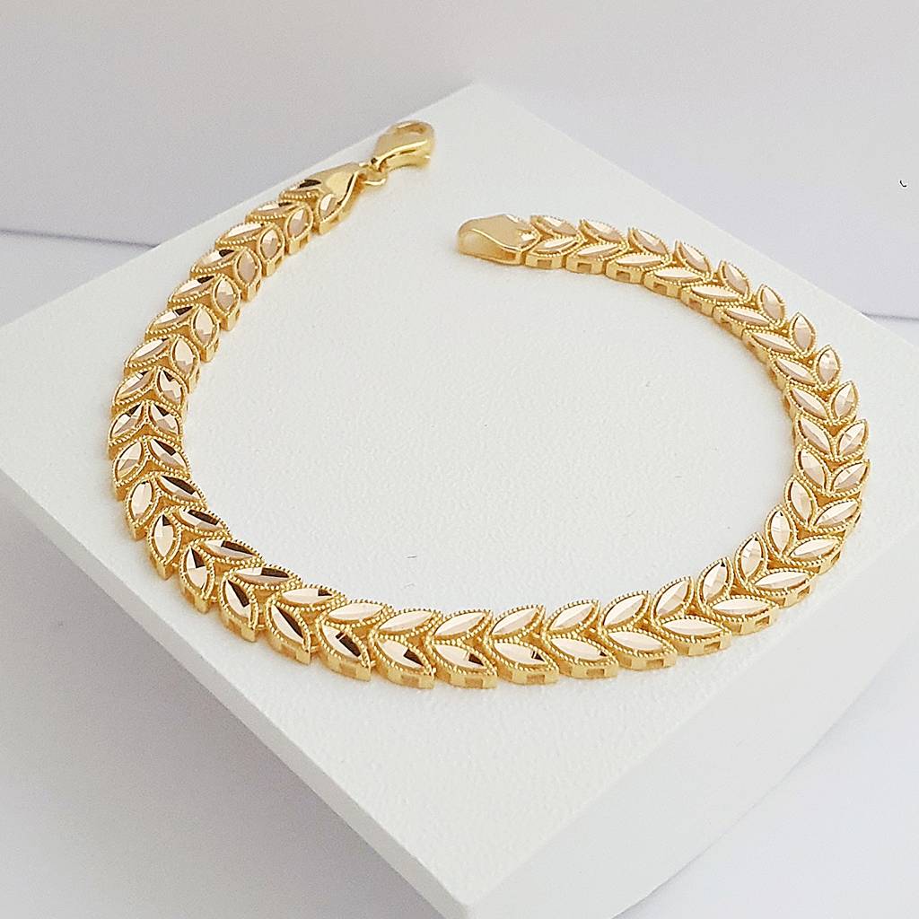 14 Ayar Altın Parlak Buğday Başağı Bileklik 7mm KN10496
