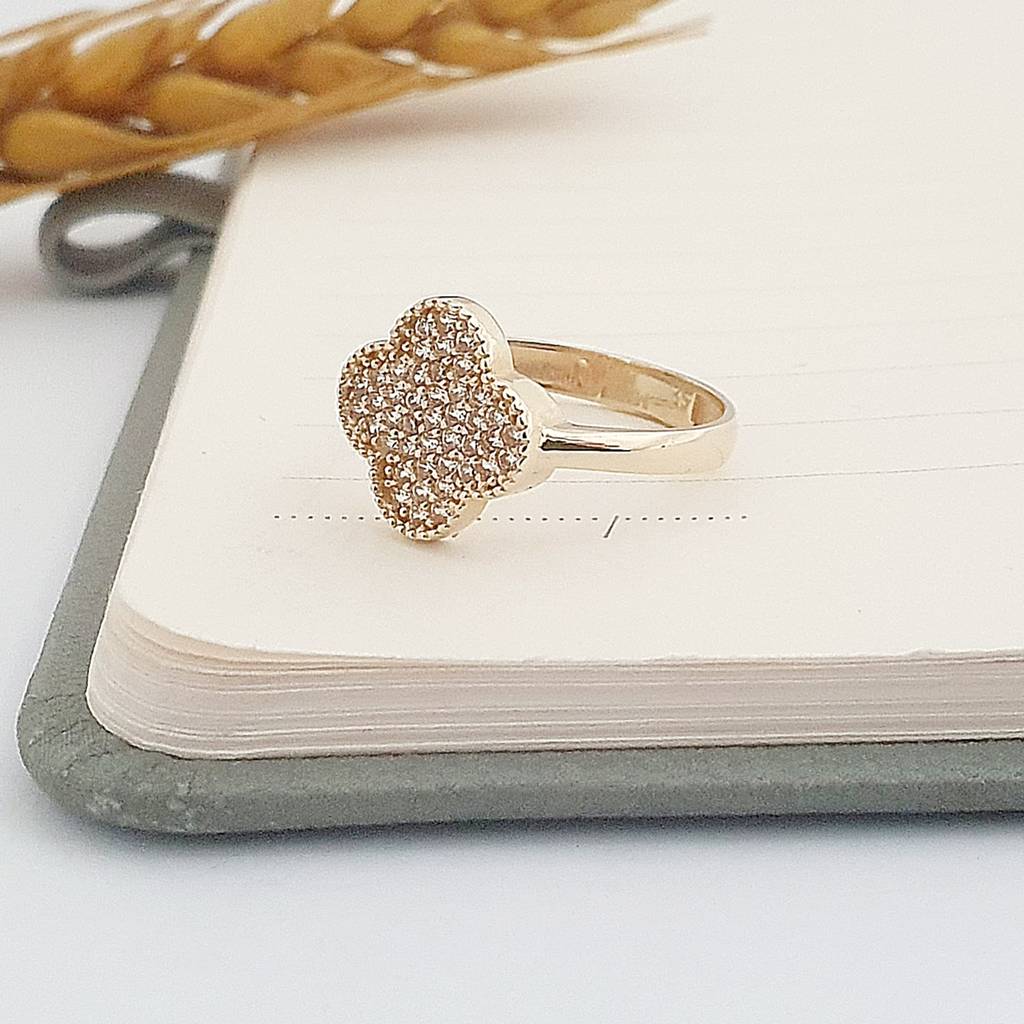 14 Ayar Altın Pave Taşlı Yonca Yüzük YZ03735