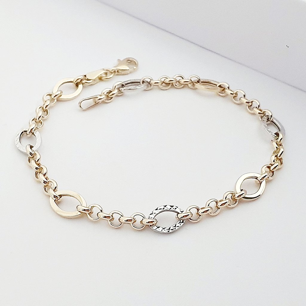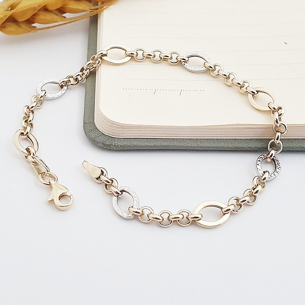 14 Ayar Altın Piramit Desenli Oval Halkalı Zincir Bileklik 619298