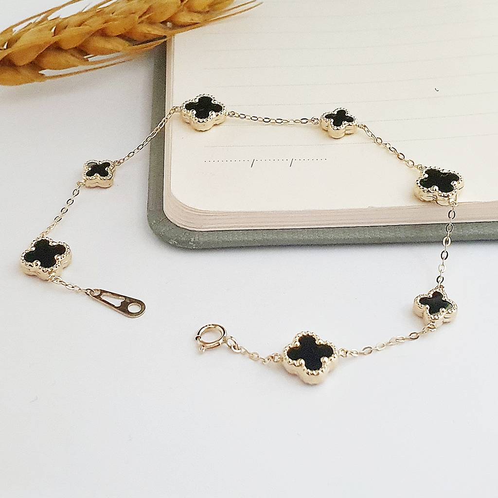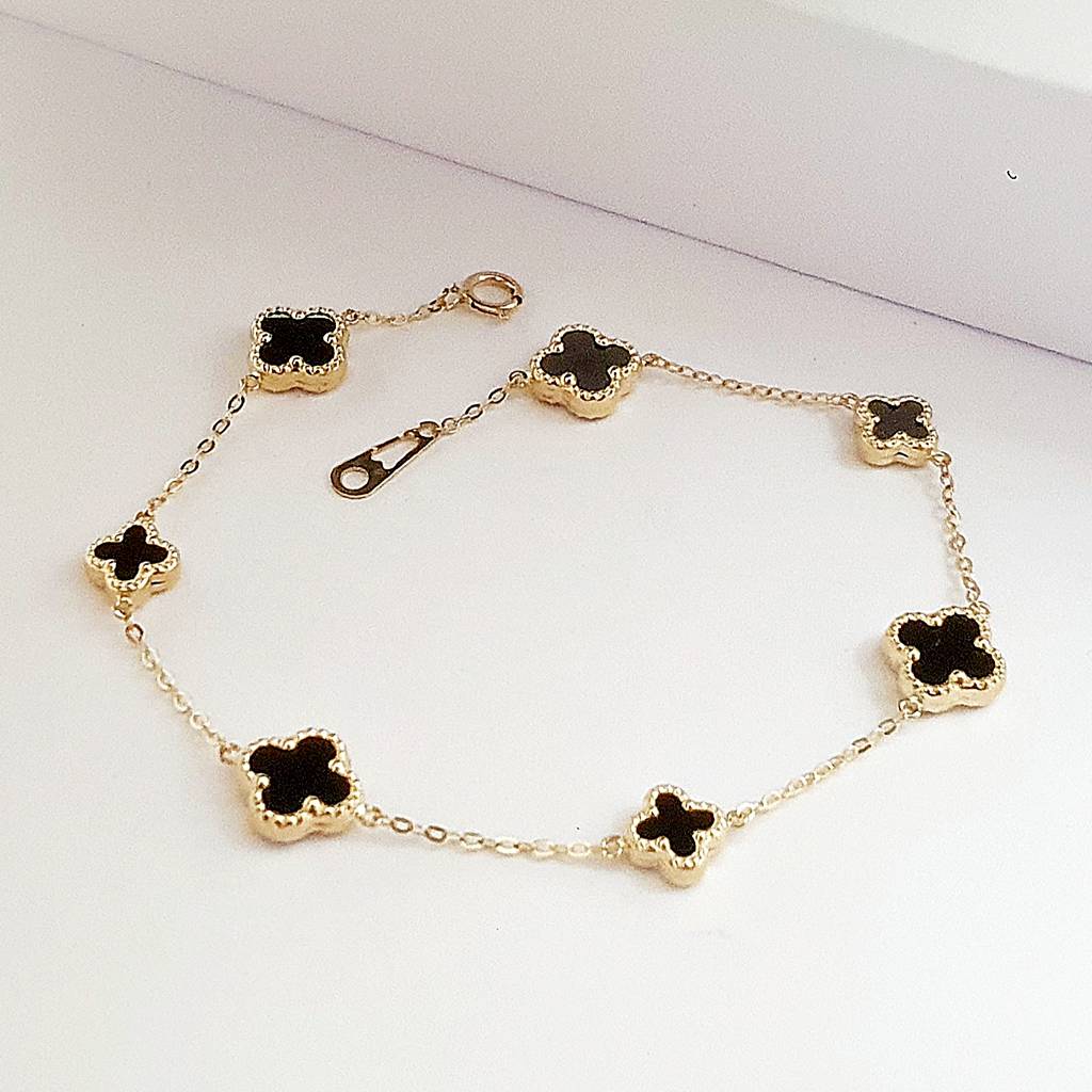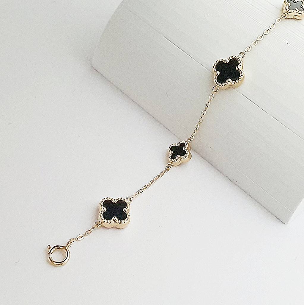 14 Ayar Altın Siyah Mineli Şans Yoncası Bileklik KN10493