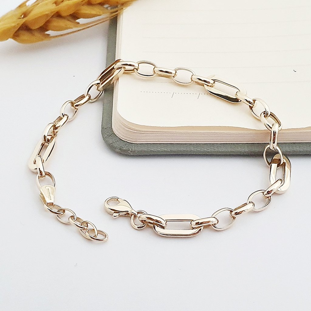 14 Ayar Altın Taşsız Karışık Halkalı Zincir Bileklik 721701