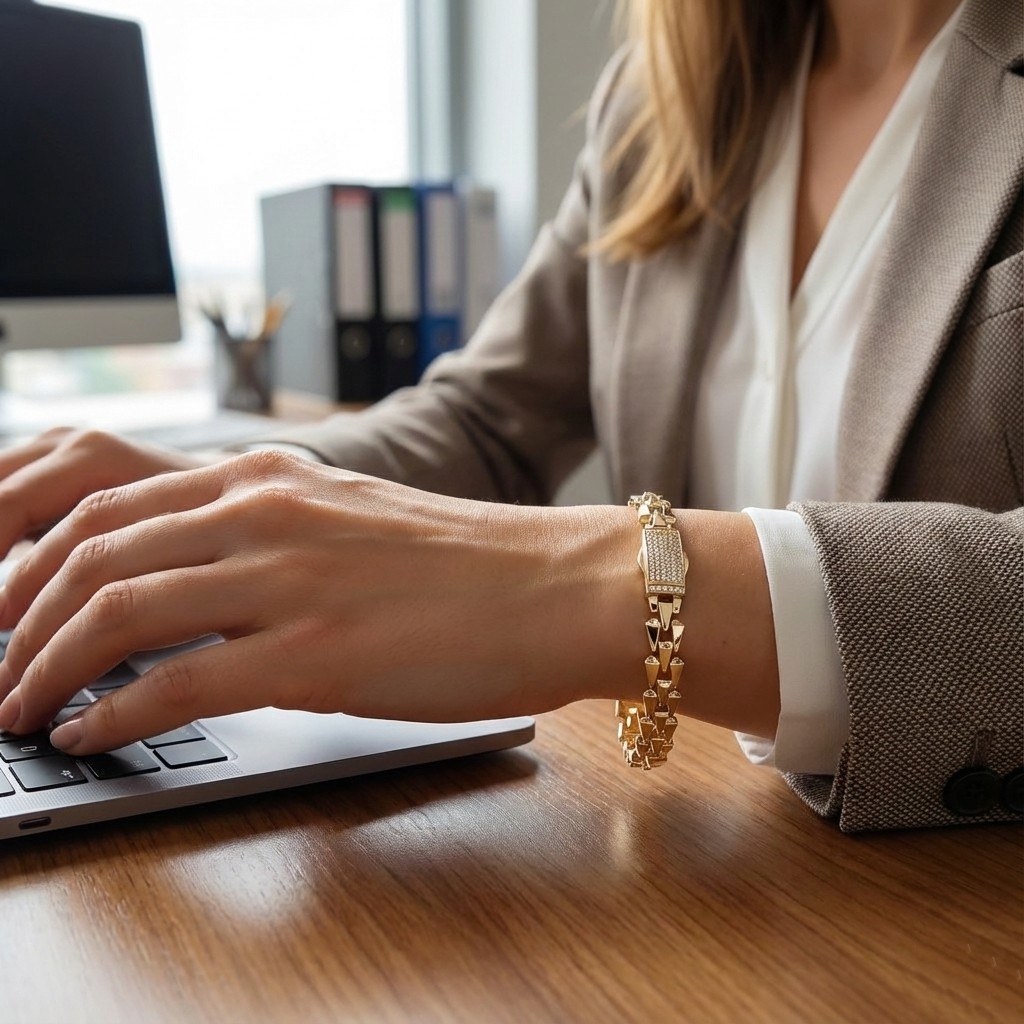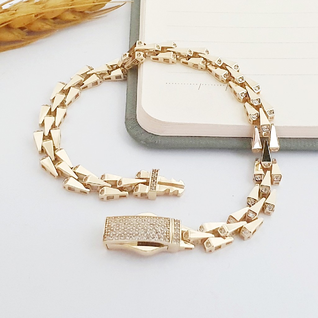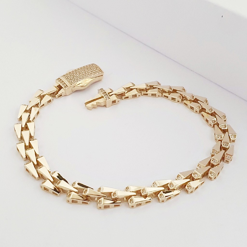 En trend tasarımlardan ilham alınarak yaratılan bu parça, geometrik yapısı ve kilit detayındaki taş ışıltılı altın bileklik yapısıyla kadınların vazgeçilmezi olacaktır. Tüm ürünlerimiz garanti kapsamındadır ve daima modern trend bileklik modelleri ile koleksiyonumuz yenilenir. Ürünün gramajı, titiz el işçiliğinden kaynaklı olarak standart gramajdan %5'e kadar sapma gösterebilir.