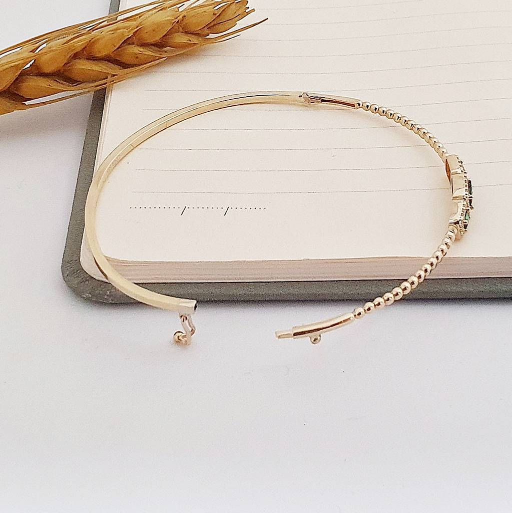 14 Ayar Altın Tria Yeşil Bagetli İnce Kelepçe Bilezik FB07303