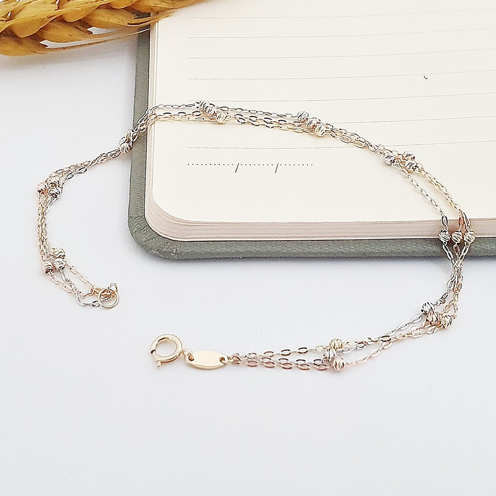14 Ayar Altın Üç Zincirli ve Renkli Dorika Bileklik 516372
