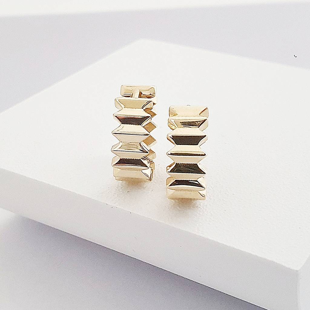Pürüzsüz ve üçgen piramit formlu tasarımı sayesinde ışığı geniş yüzeylerinde toplayıp yansıtan bu küpe, her açıdan dinamik bir parıltı sunuyor. 14 ayar sarı altından üretilmiş olan bu özel parça, alışılmış yuvarlak hatların dışına çıkarak daha maskülen bir güç ile feminen zarafeti birleştiriyor. En trend ürünleri kaliteli tasarımlarıyla Cebinizdeki Kuyumcu AltınPlaza'da bulabilirsiniz.