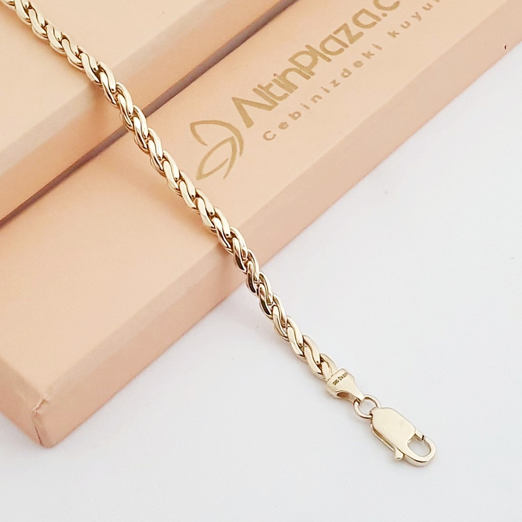 Ürünümüz, 14 ayar altından üretilmiştir (585K). Altın modelleri ve daha fazlası için en uygun fiyatları sunan AltınPlaza, tüm ürünlerinde şeffaflık ve garanti sunar. Bu modern ve trend ürün, patentli bir üründür ve size güvenle kullanmanız için AltınPlaza sertifikası ile gelir. Titiz el işçiliğinden kaynaklı, ürünün gramajında standart gramajdan %5'e kadar sapma olabilir. Bu durum, her bir bileklik parçasının özenle, el emeğiyle hazırlandığının doğal bir sonucudur.