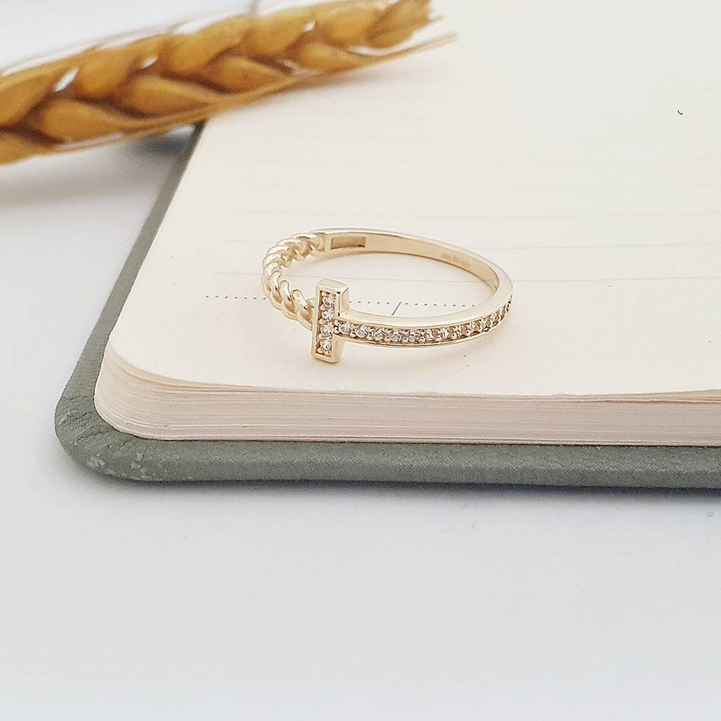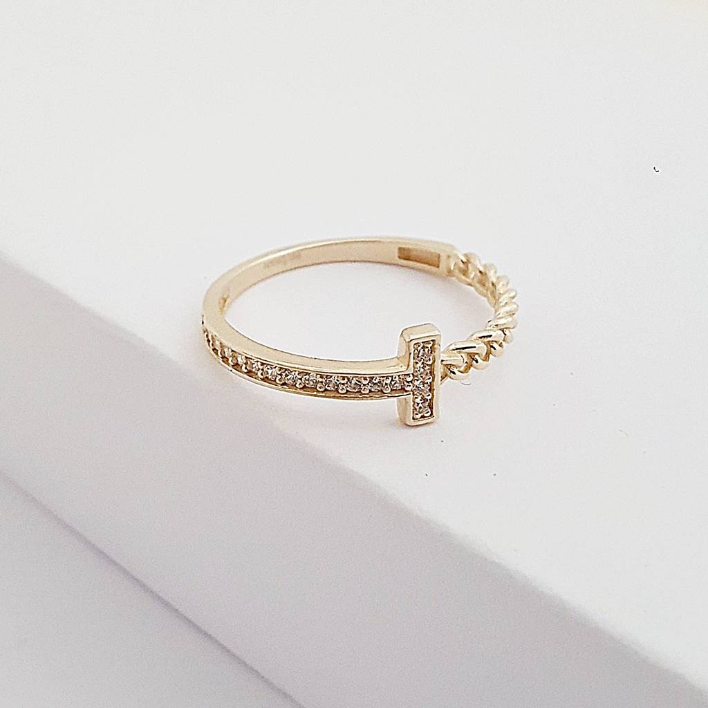 14 Ayar Altın Yarım Zincir Işıltılı Yüzük YZ03847