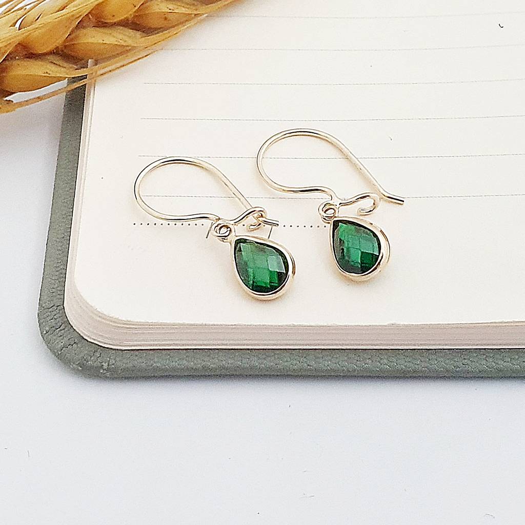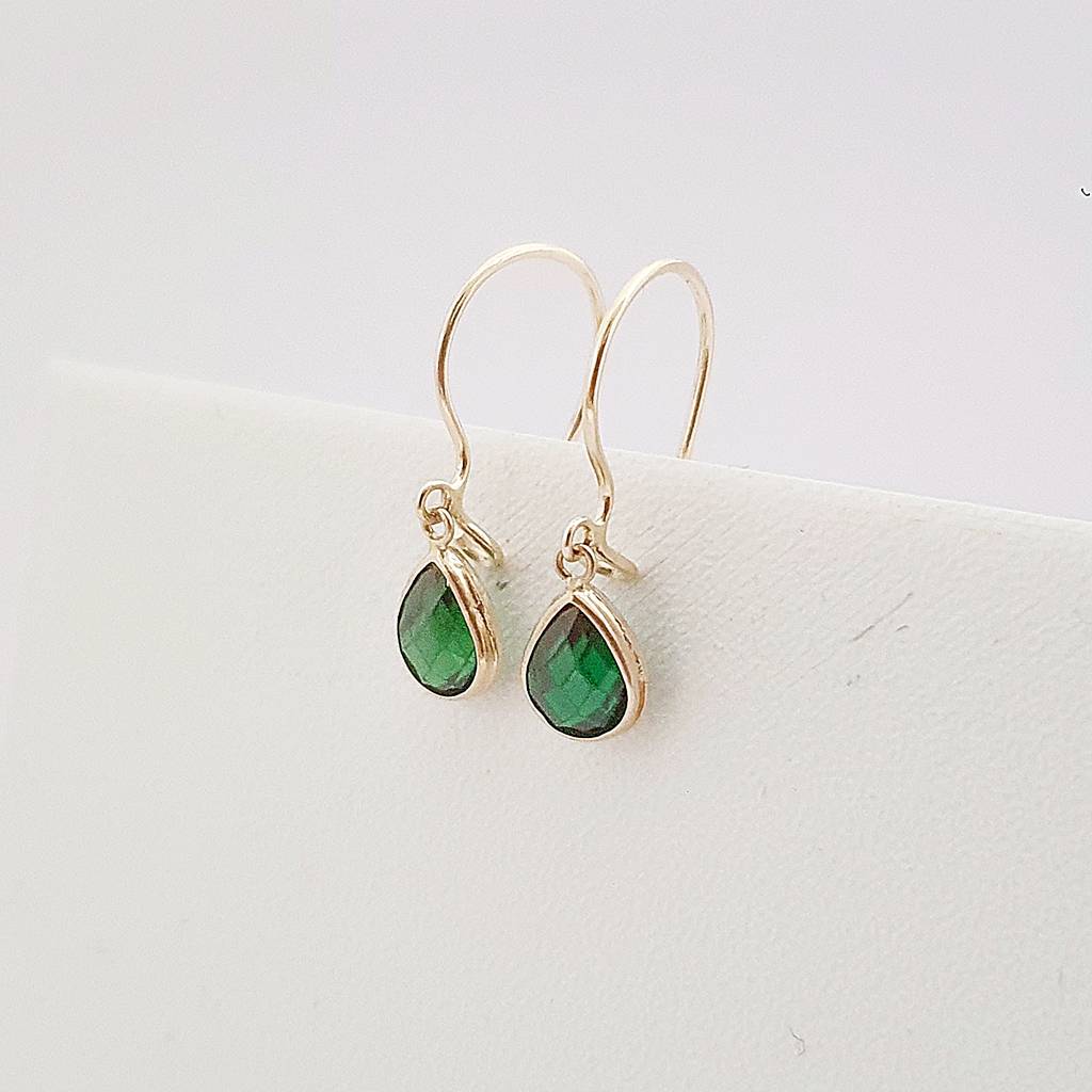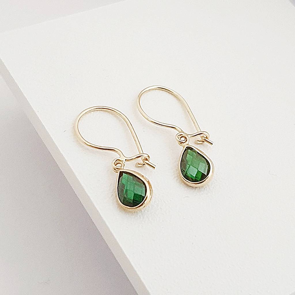 14 Ayar Altın Yeşil Taşlı Damla Sallantılı Küpe KP13190