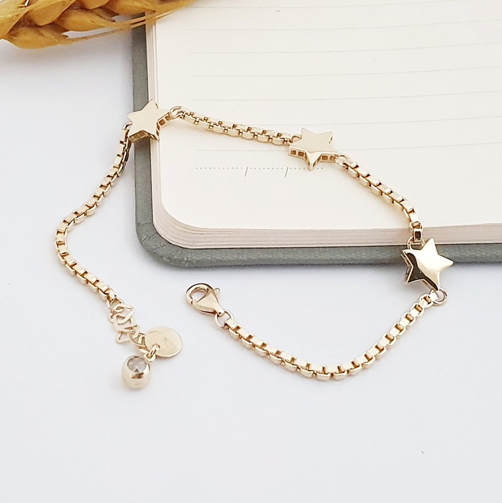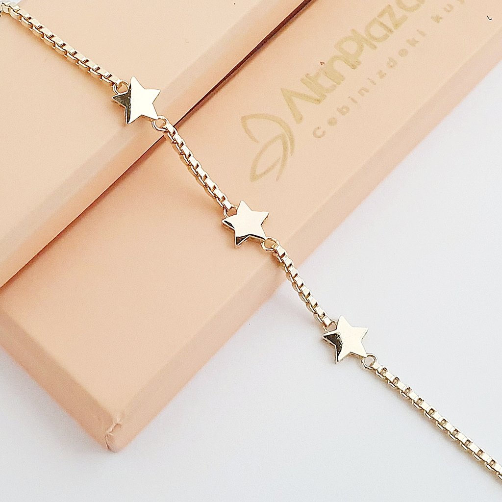 14 Ayar Altın Yıldız Armonisi Kutu Zincir Bileklik KN10124