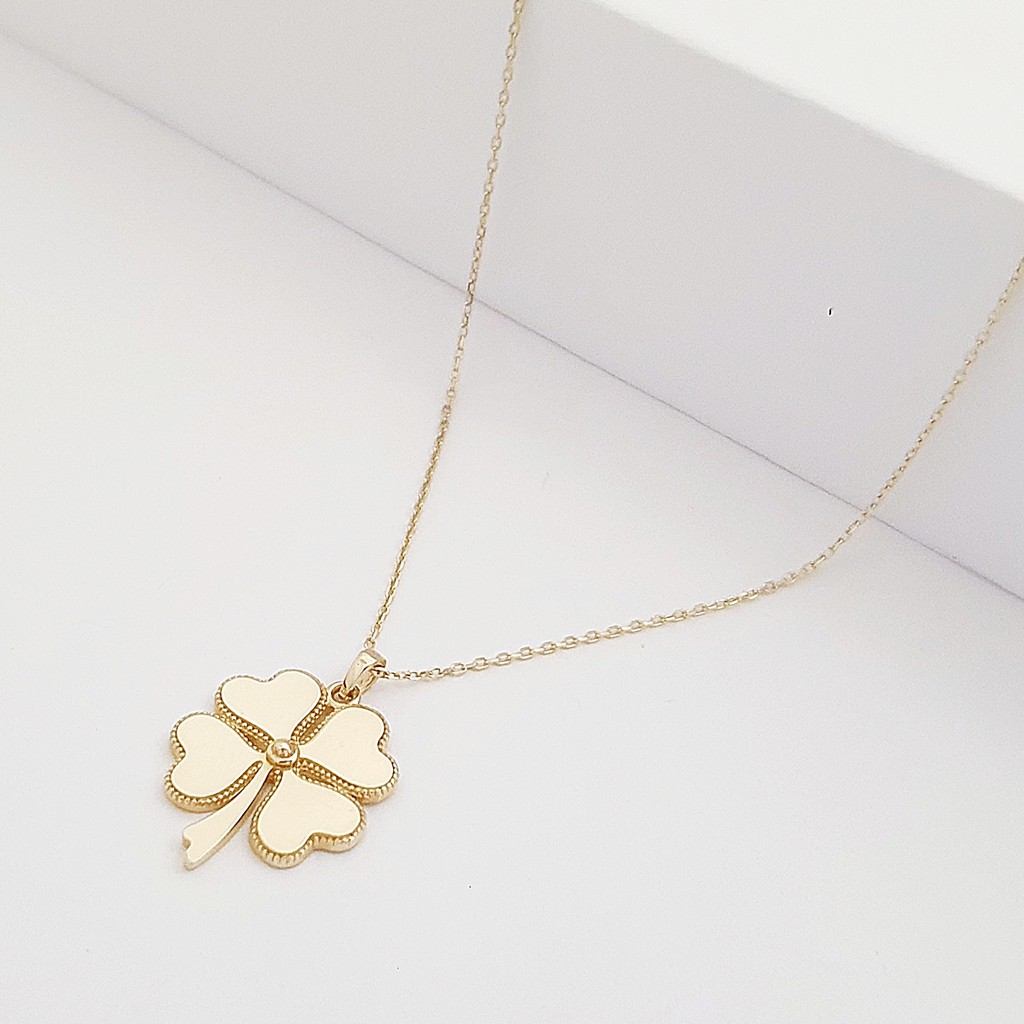 14 Ayar Altın Yonca Şans Tılsımı Kolye - KL13569