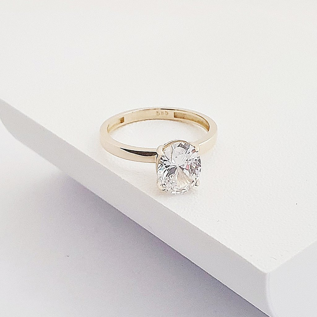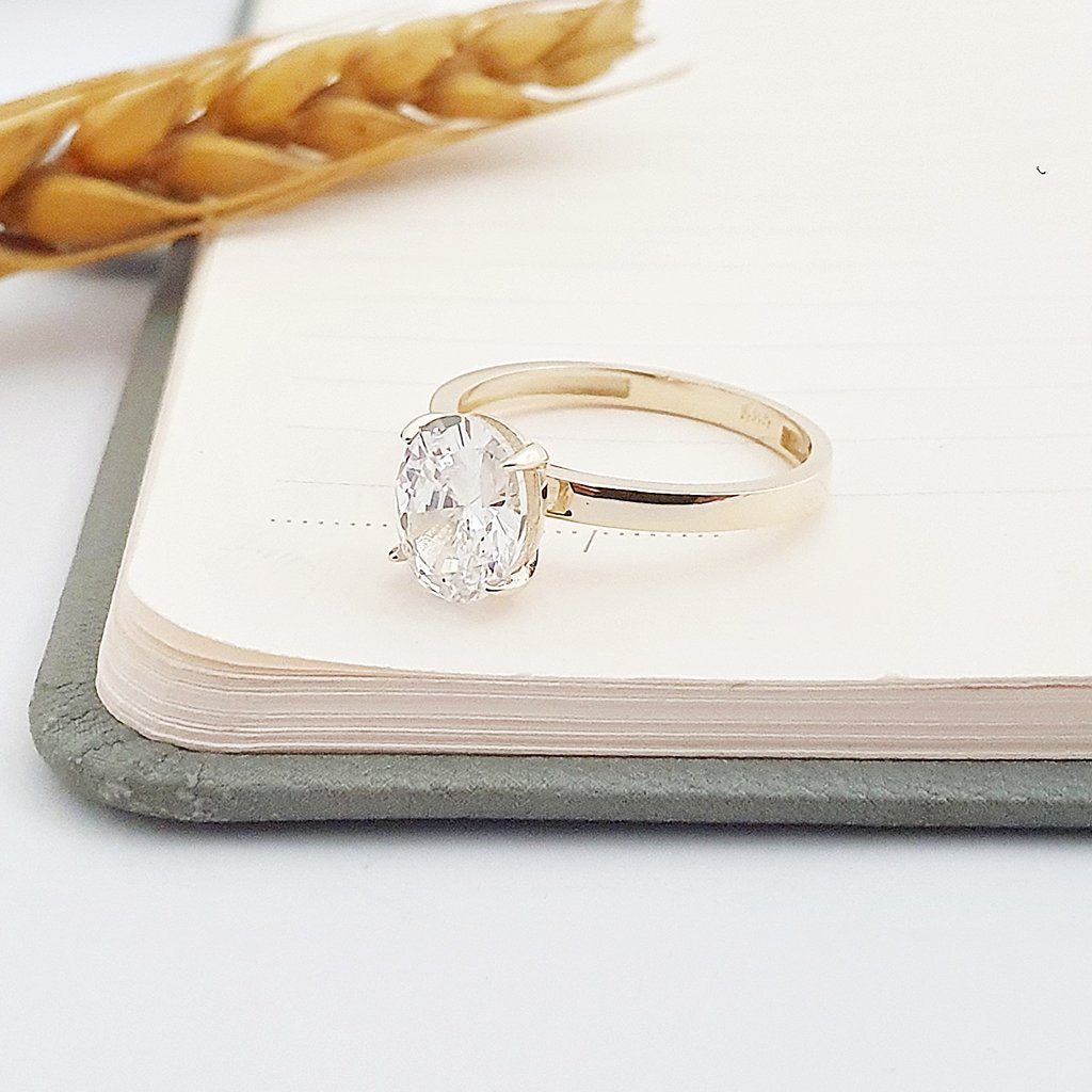 14 Ayar Altın Yuvarlak Tırnak Oval Tektaş Yüzük