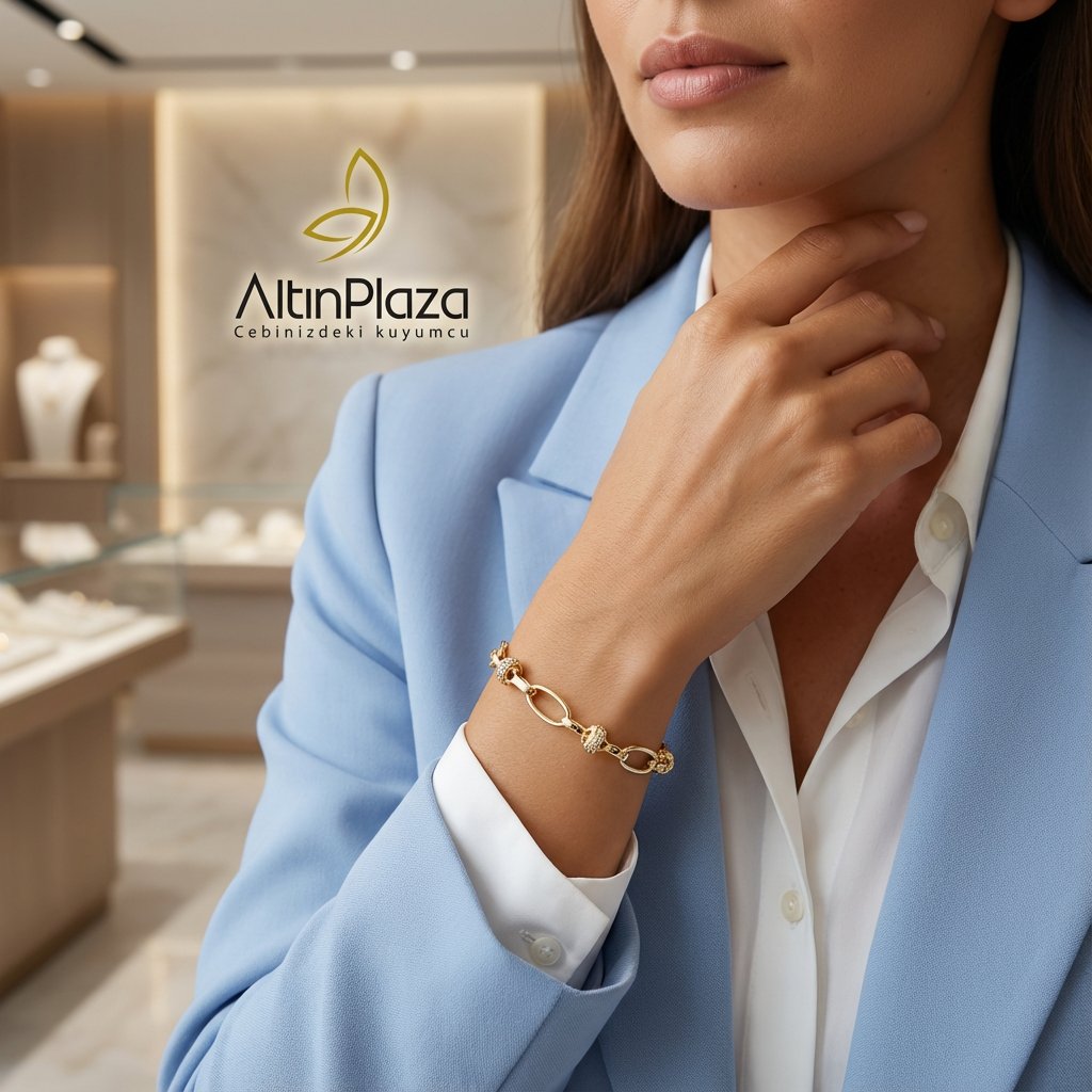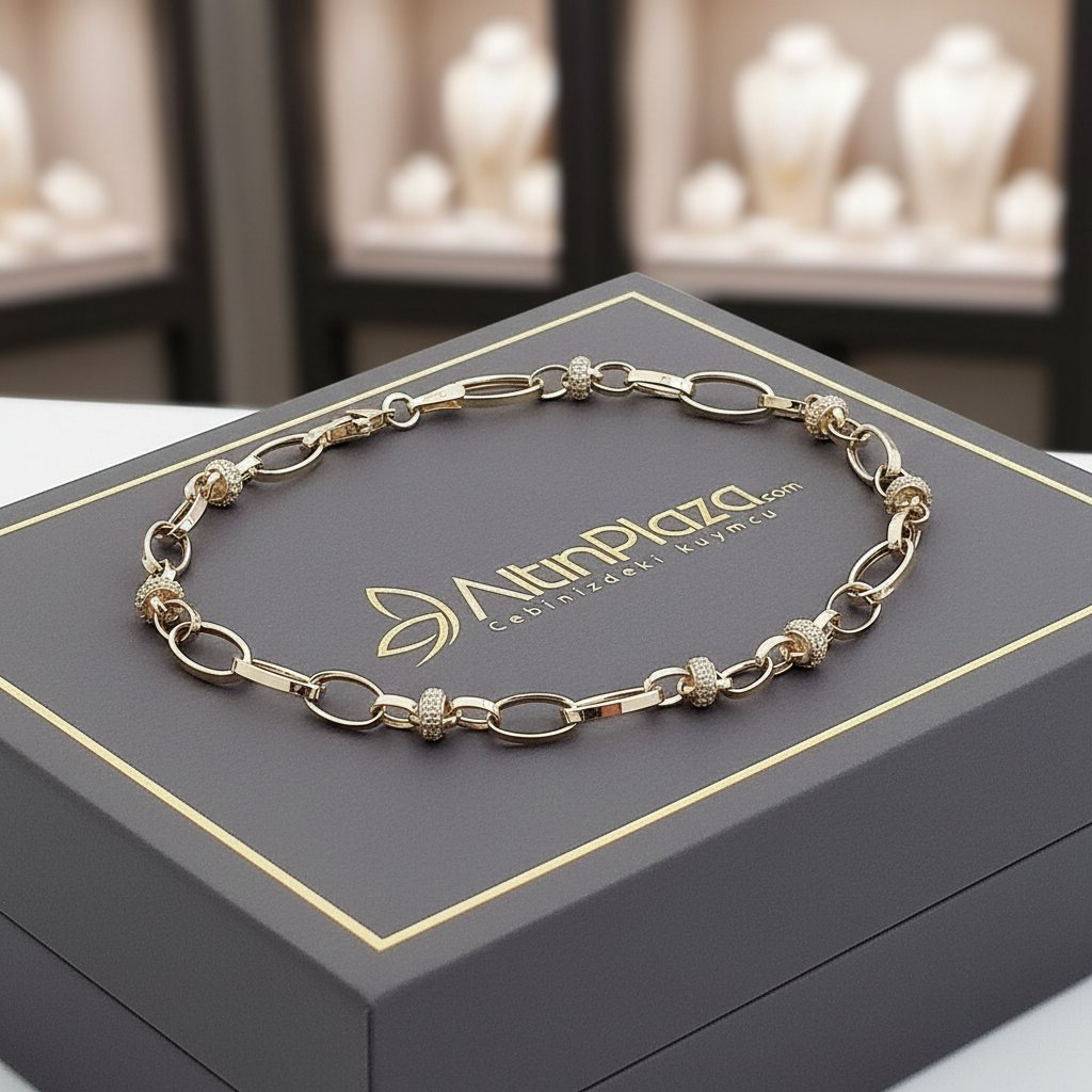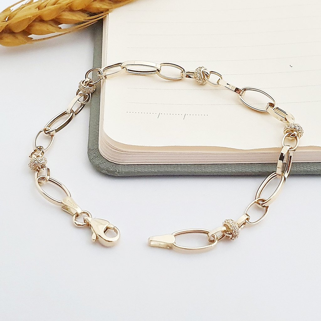 14 Ayar Altın Zarif Halkalı Zincir Bileklik 815268