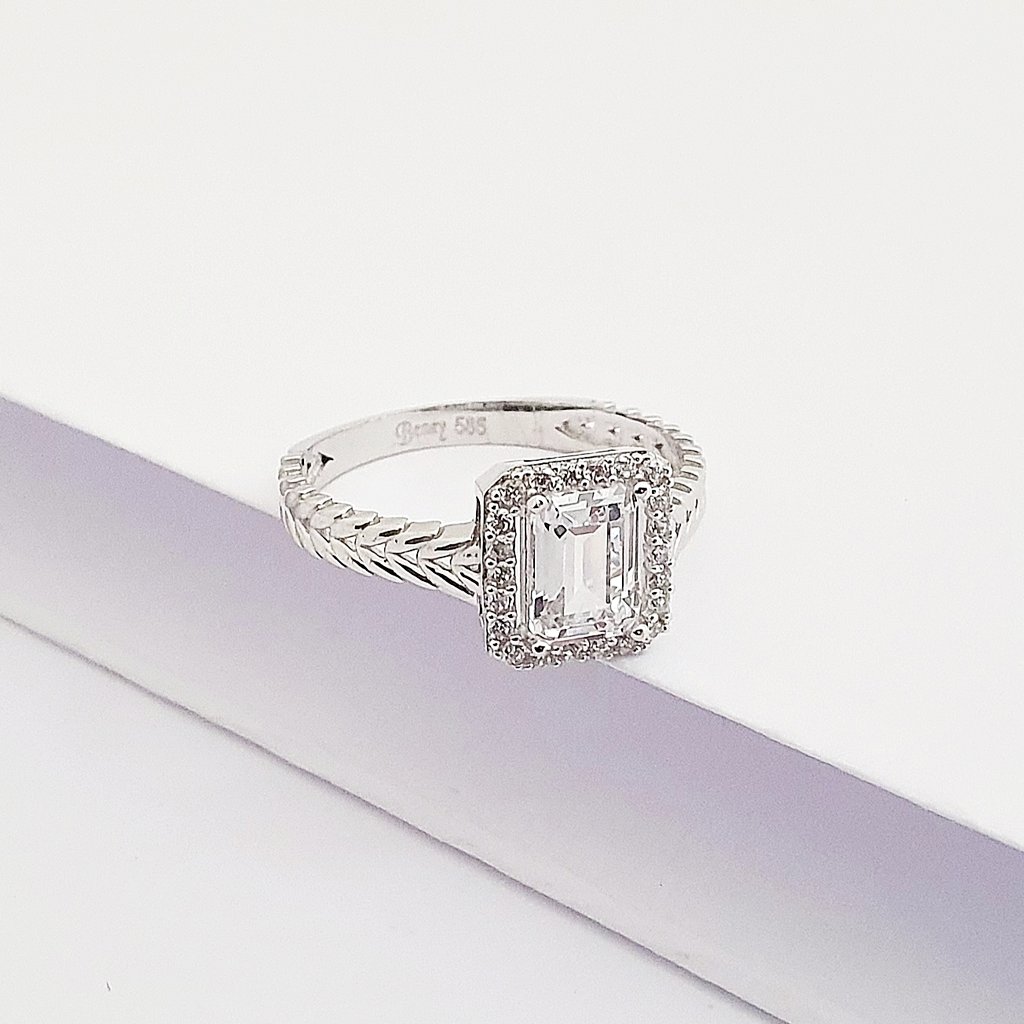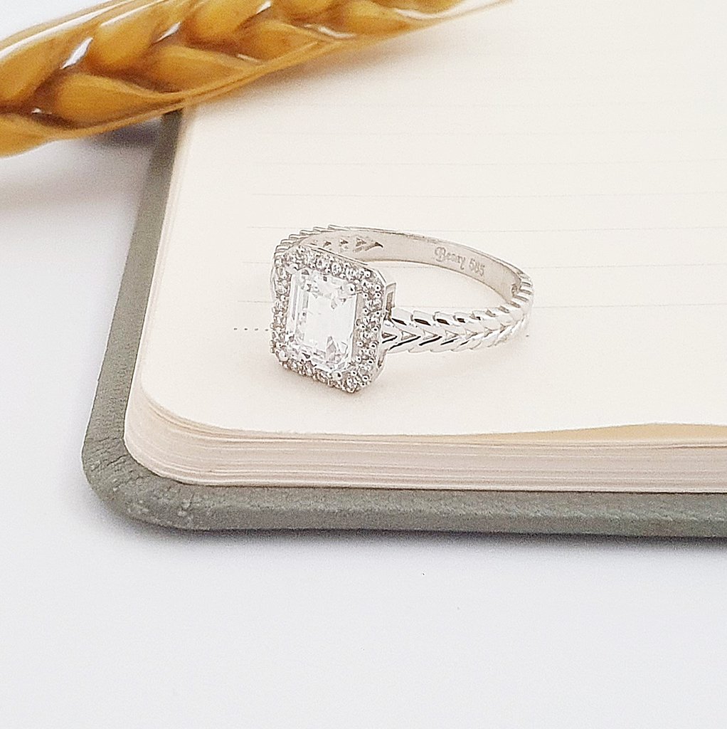 14 Ayar Beyaz Altın Balık Sırtı Model Baget Taşlı Yüzük YZ05063