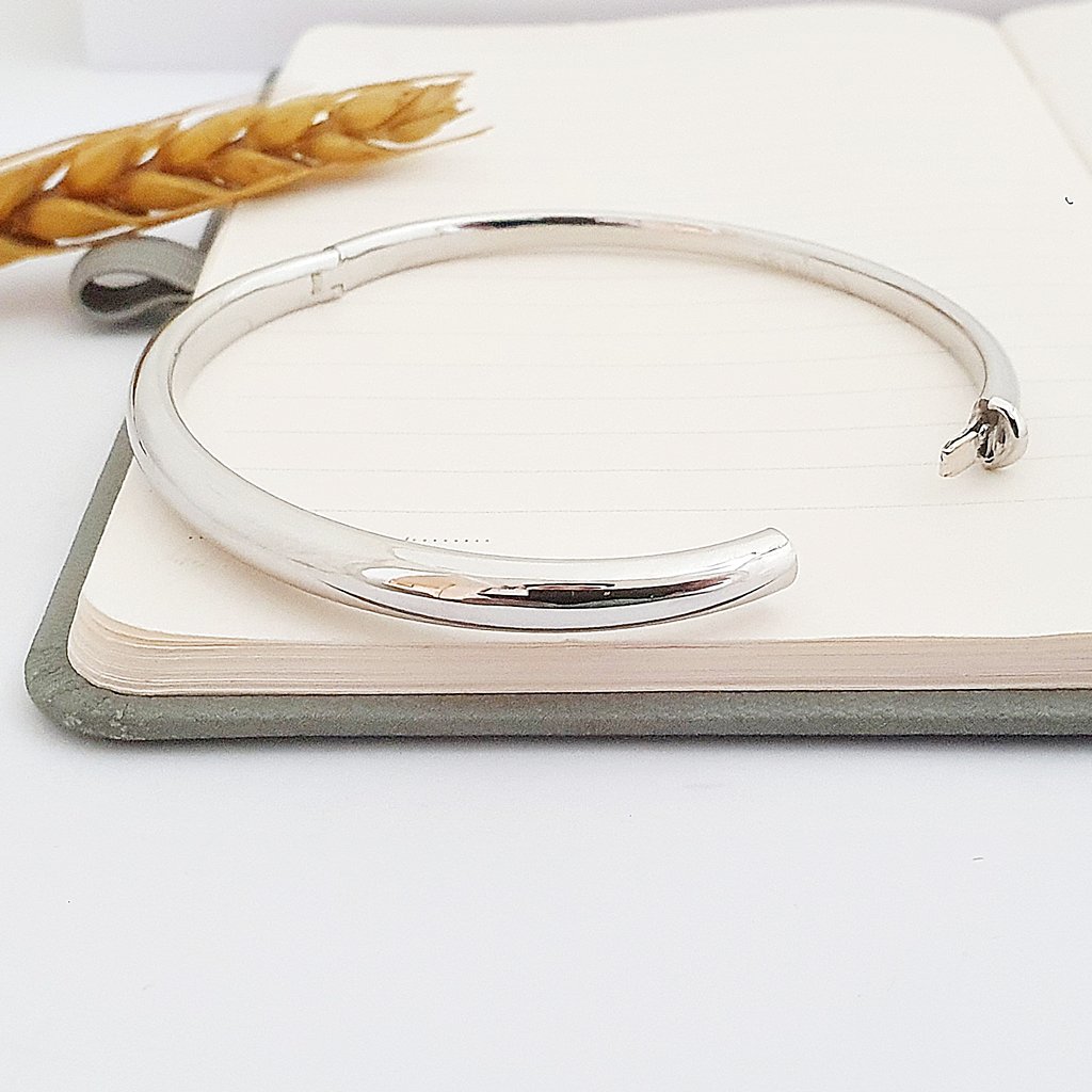 14 Ayar Beyaz Altın Parlak Düz Kelepçe Bilezik FB06282