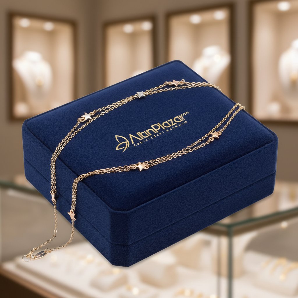 14 Ayar Çift Zincirli Renkli Minimal Yıldızlar Bileklik 603367