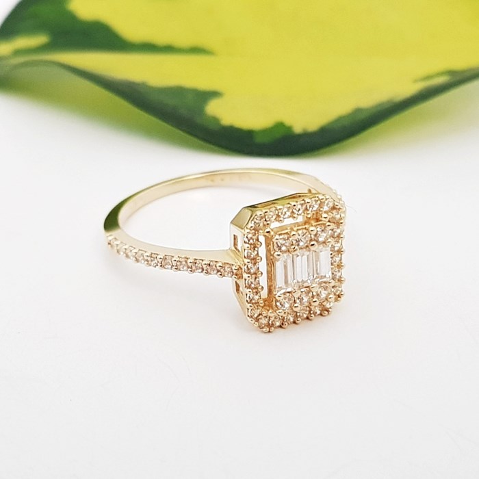 İncelediğiniz YZ03748 baget yüzük modeli 14 ayar altından üretilmiştir.