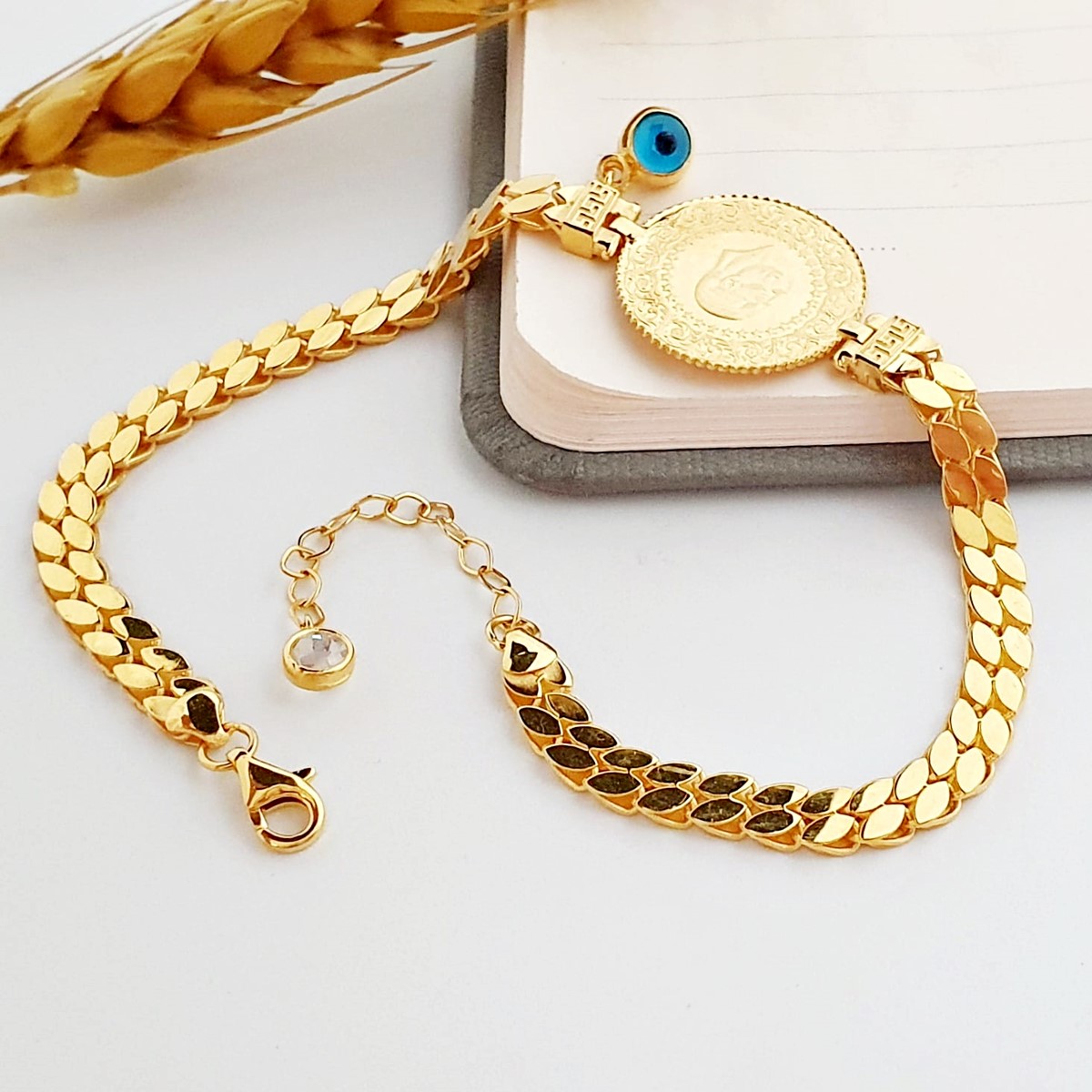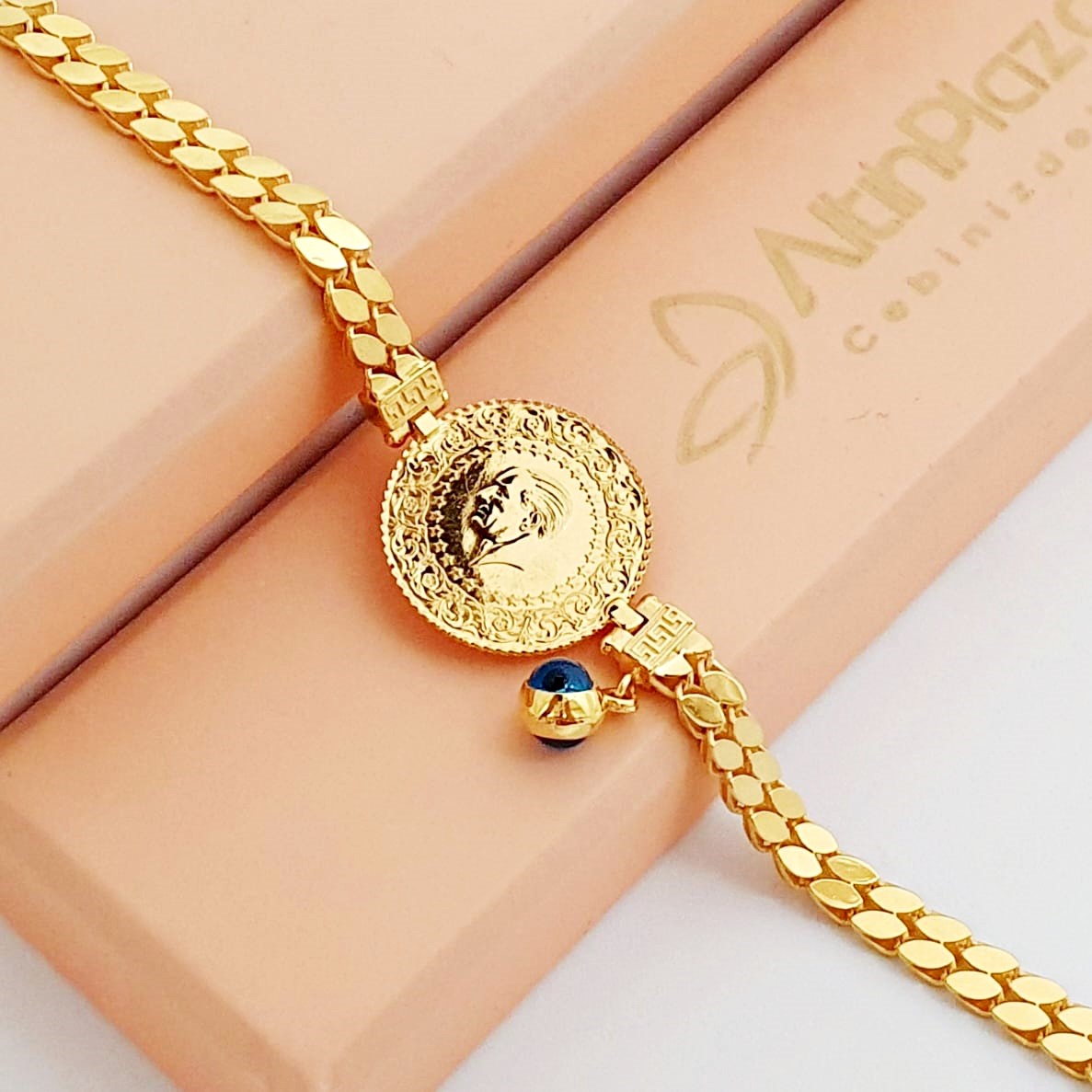 2 Pullu Zincir Kordonlu Grek Çeyrek Altınlı Bileklik KN08620