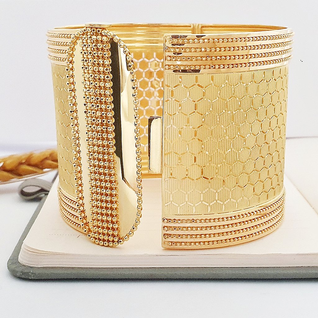22 Ayar Altın Bal Peteği Motifli Saray Kelepçe Bilezik FB06087