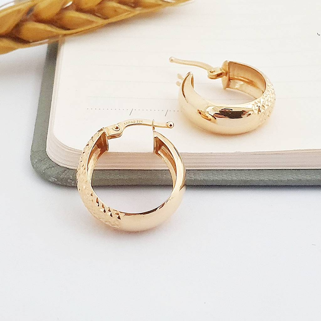 22 Ayar Altın Bombeli Kalem Desenli Orta Boy Halka Küpe KP13121