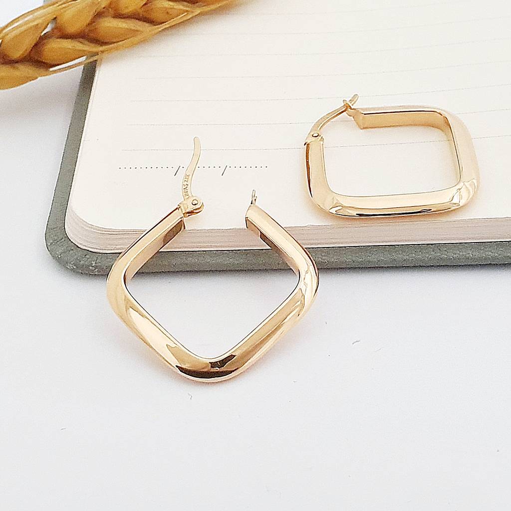 22 Ayar Altın Bombeli Kare Form Büyük Halka Küpe KP13125