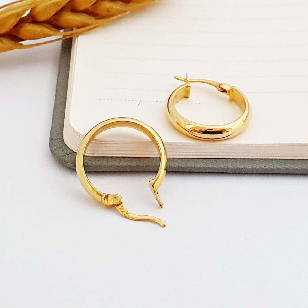 Zarafetin sade ve ışıltılı hali! Bu klasik halka küpe, düz şarnel klasik tasarımdır ve taşsız pürüzsüz yüzey ile modern bir şıklık sunar. 18mm çapıyla orta boydur, bu da onu hem günlük kullanım hem de özel günler için ideal bir parça yapar. 22 ayar altın küpe modelleri arasında yer alan bu küpe, sade ve göz alıcı yapısıyla her kombine uyum sağlar.
