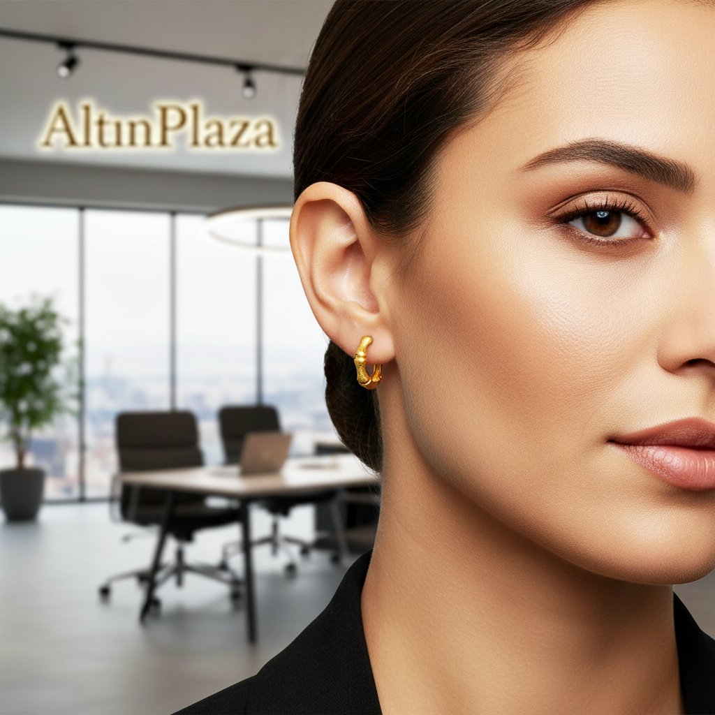 Fark yaratacak, en trend, göz alıcı ürünleri kaliteli tasarımlarıyla bu eşsiz kemik tasarımlı modern küpe modeli, sıradan halka küpelerden sıkılanlar için idealdir. Küpenin dokulu yapısı, ona hem rustik hem de modern bir hava katar. 22 ayar altın küpe modelleri arasında yer alan bu parça, yüksek ayar altının parlaklığını ve kalitesini taşır.